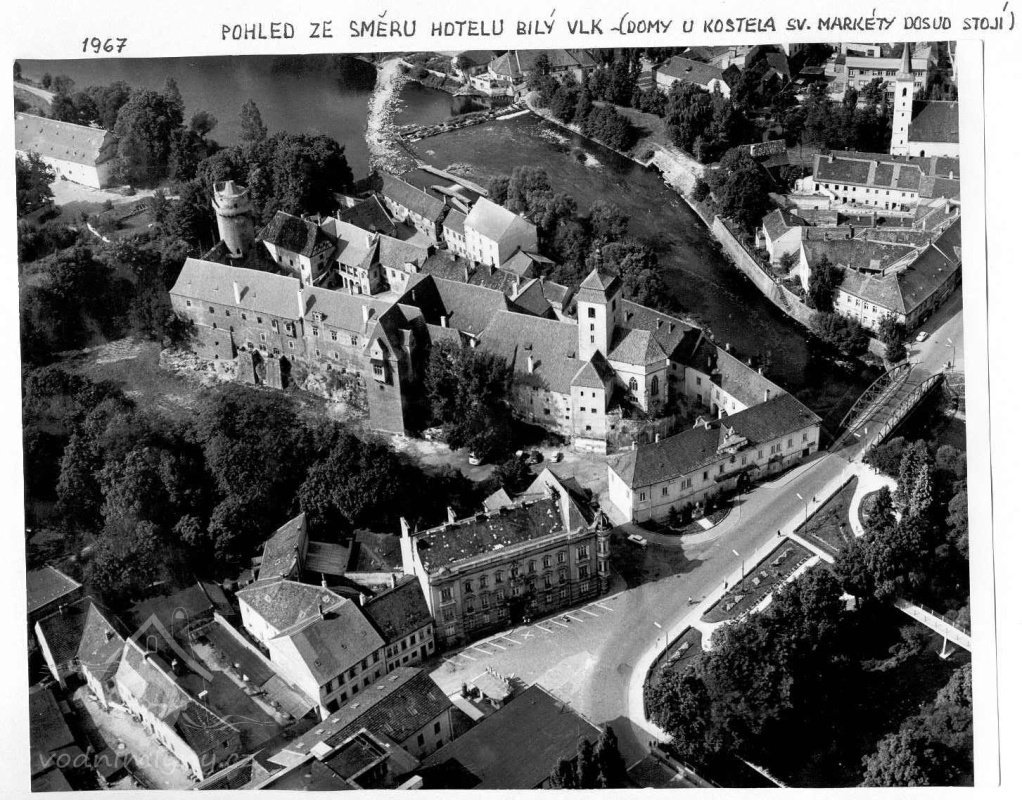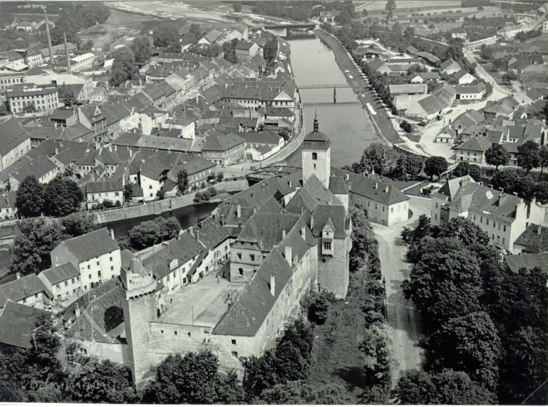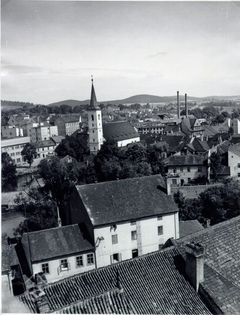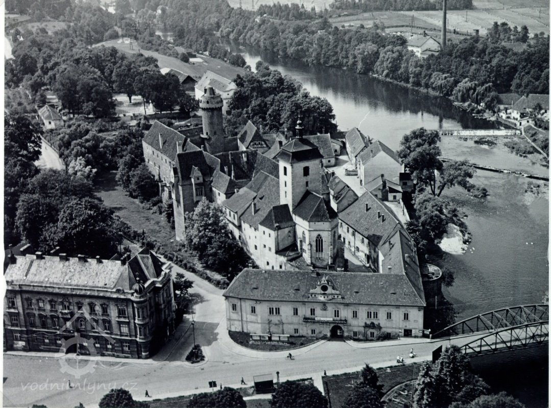 Mlýn zachycený na fotografii pořízené z věže Rumpál, nedatováno, © autor neznámý, viz http://www.strakonice.masi.cz/