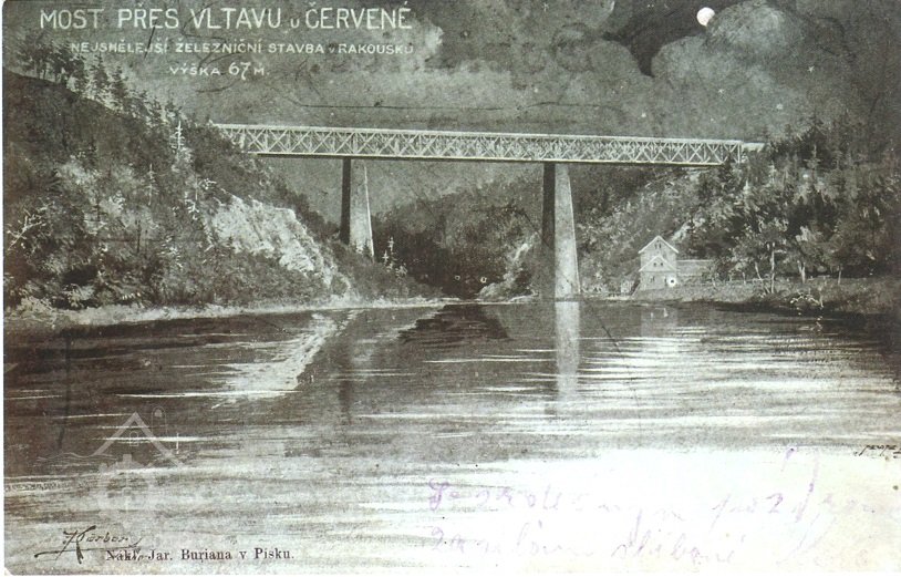 V dnešním a i v dalším povídání o staré Vltavě se podíváme do Červené nad Vltavou. Při plavbě od Podolska narazíme po cca 3 kilometrech plavby na další pamětihodnost středního Povltaví, kterou je železniční most přetínající Vltavu v místech, kde začínala obec Červená nad Vltavou zde označovaná římskou číslicí I.