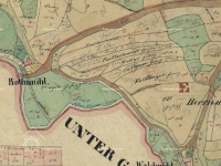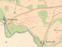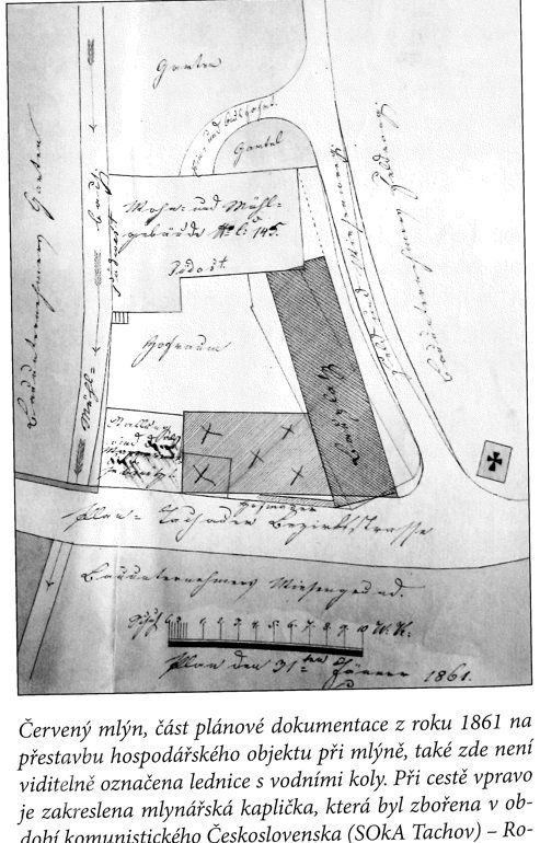 1656 jeden ze tří plánských mlýnů (Rothmühle, Schladamühle a Waldmühle)