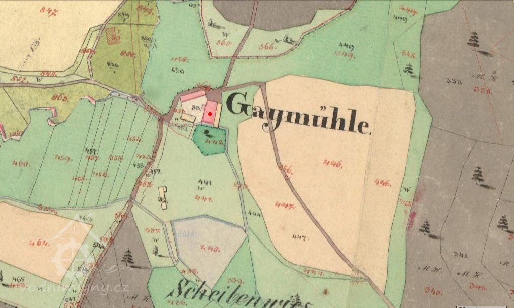 Mlýn je zachycen již na mapě I. voj. mapování.