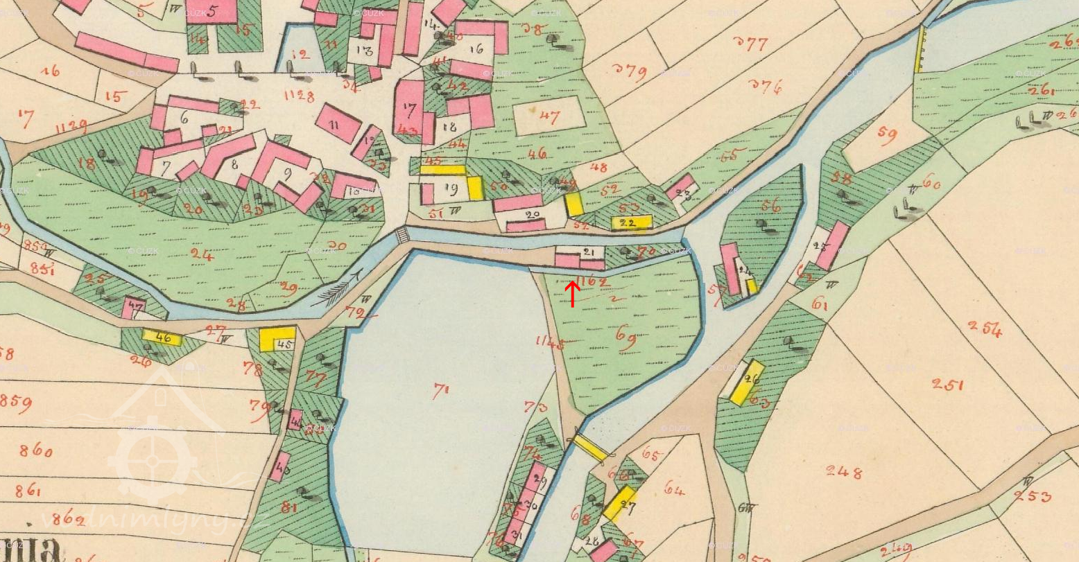 K mlýnu byla přiváděna voda náhonem z velkého Návesního rybníka, ten byl výrazně zmenšen a z náhonu se nedochovaly žádné pozůstatky.