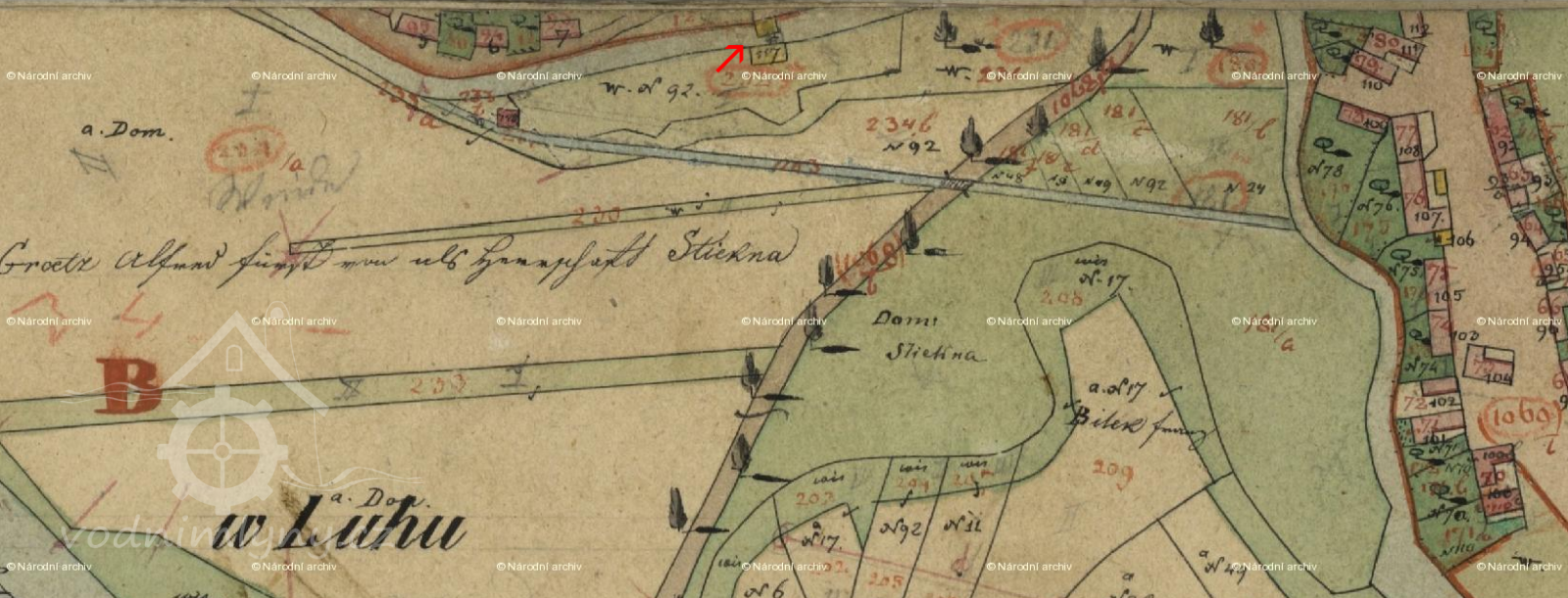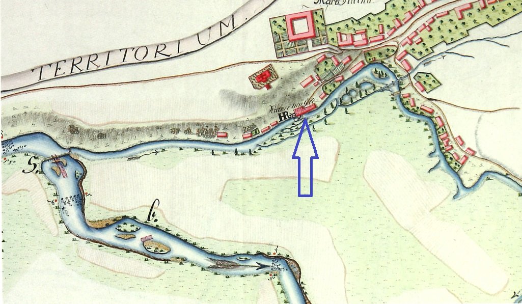 1713 Tereziánský katastr: panský mlýn o 3 kolech, 3 stoupách a 1 pile