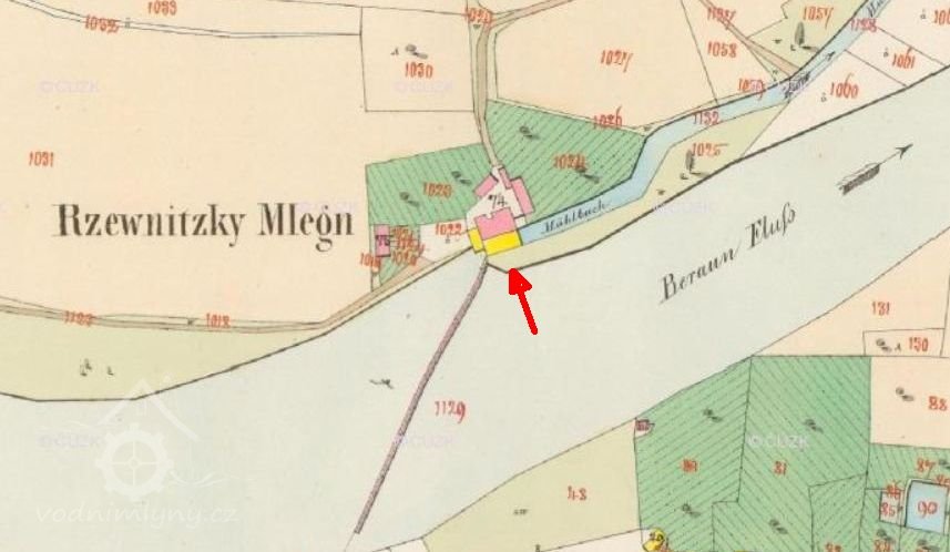 Na II. vojenském mapování, Císařských povinných otiscích stabilního katastu a Indikační skice stabilního katastru je mlýn uveden jako Rzewnizky/Řevnický.