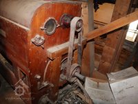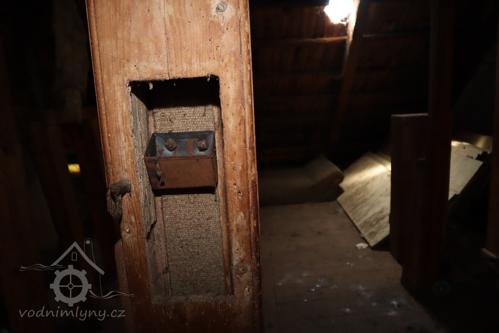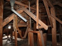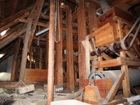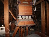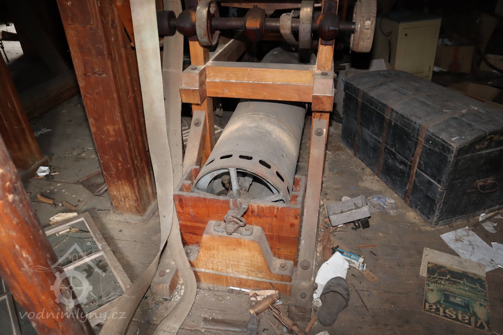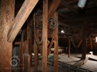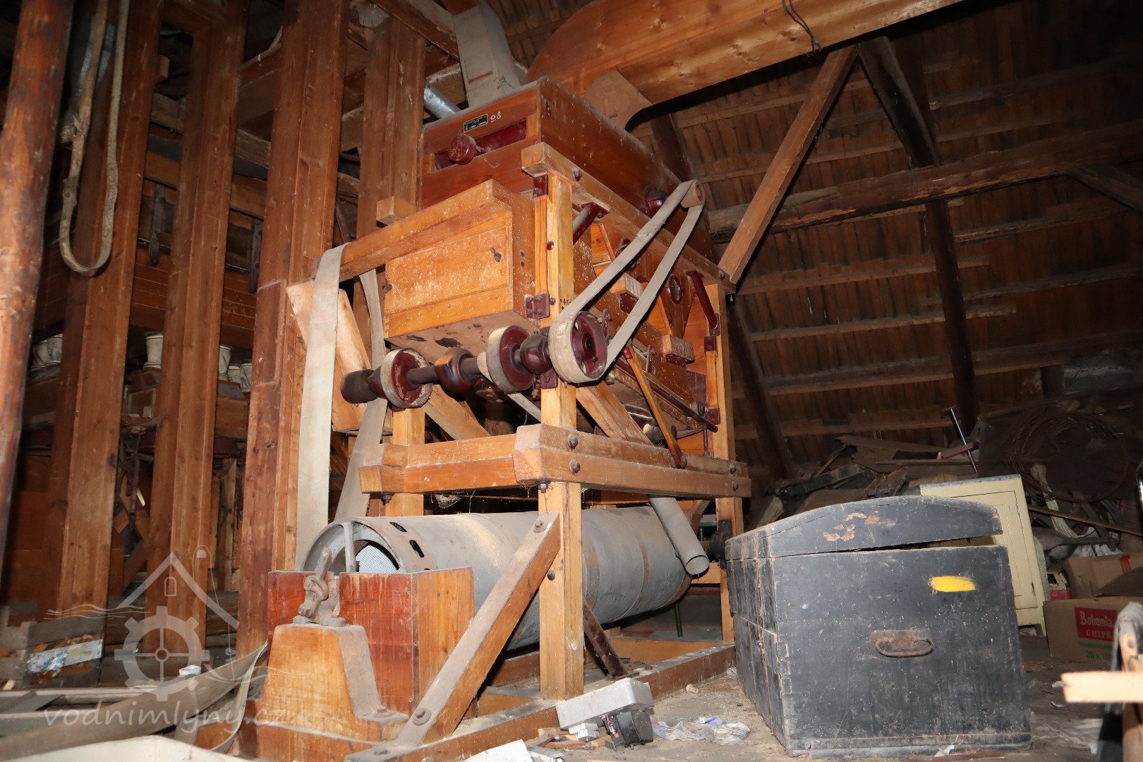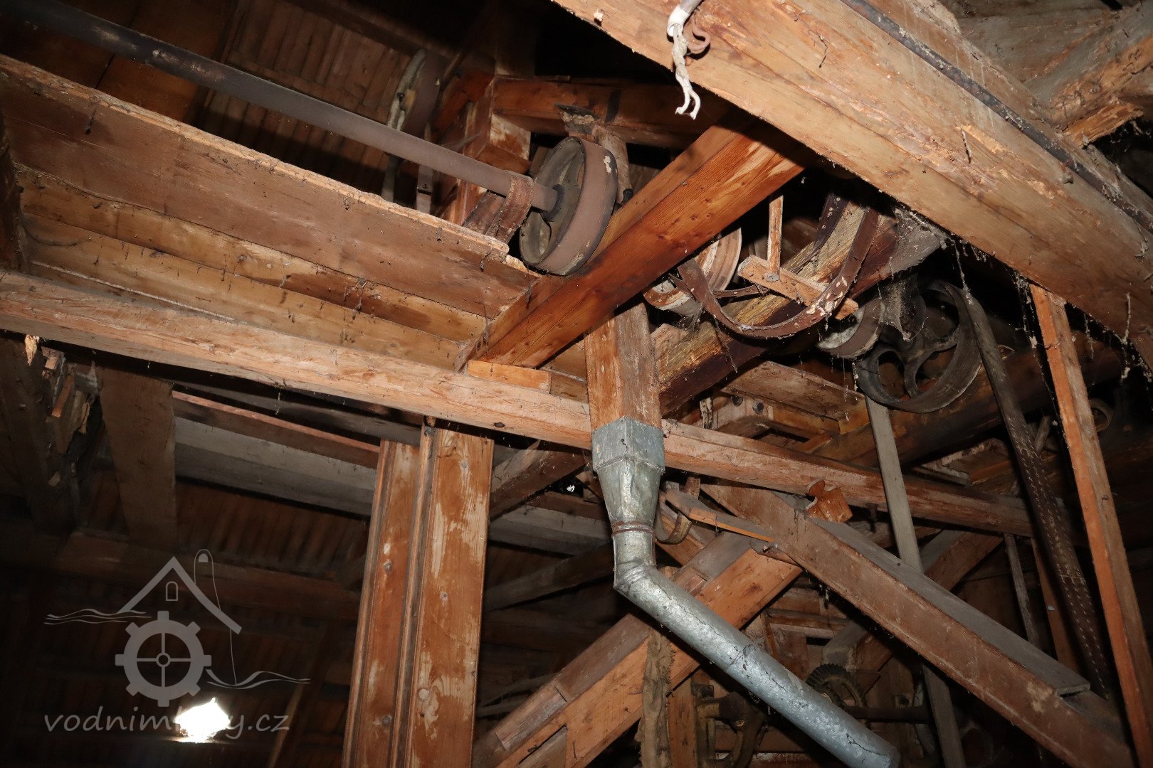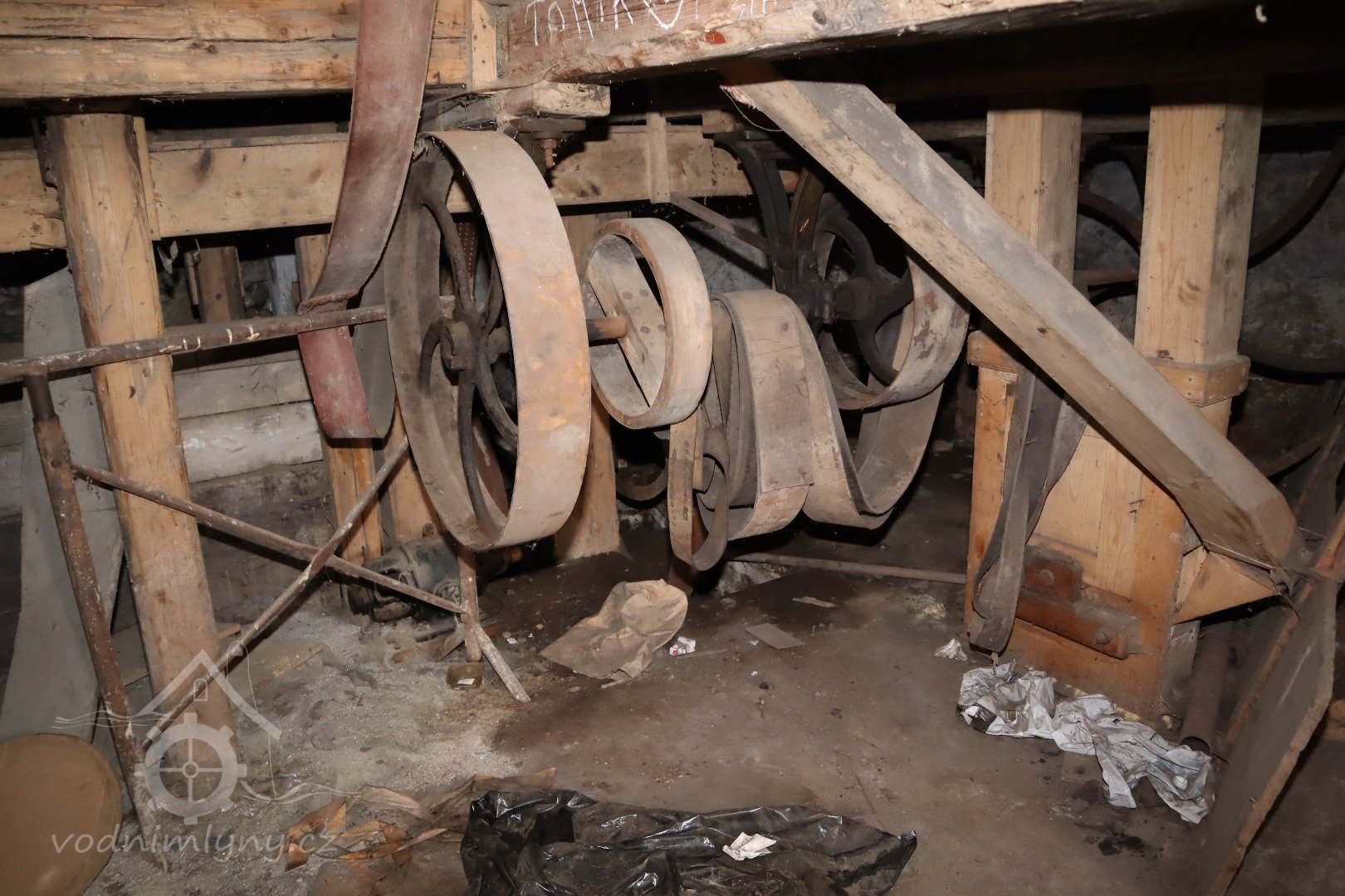 Zařízení mlýnice - podkroví, 2020, © BeJi, (Prvky na obrázku: transmise, řemenice, převody)