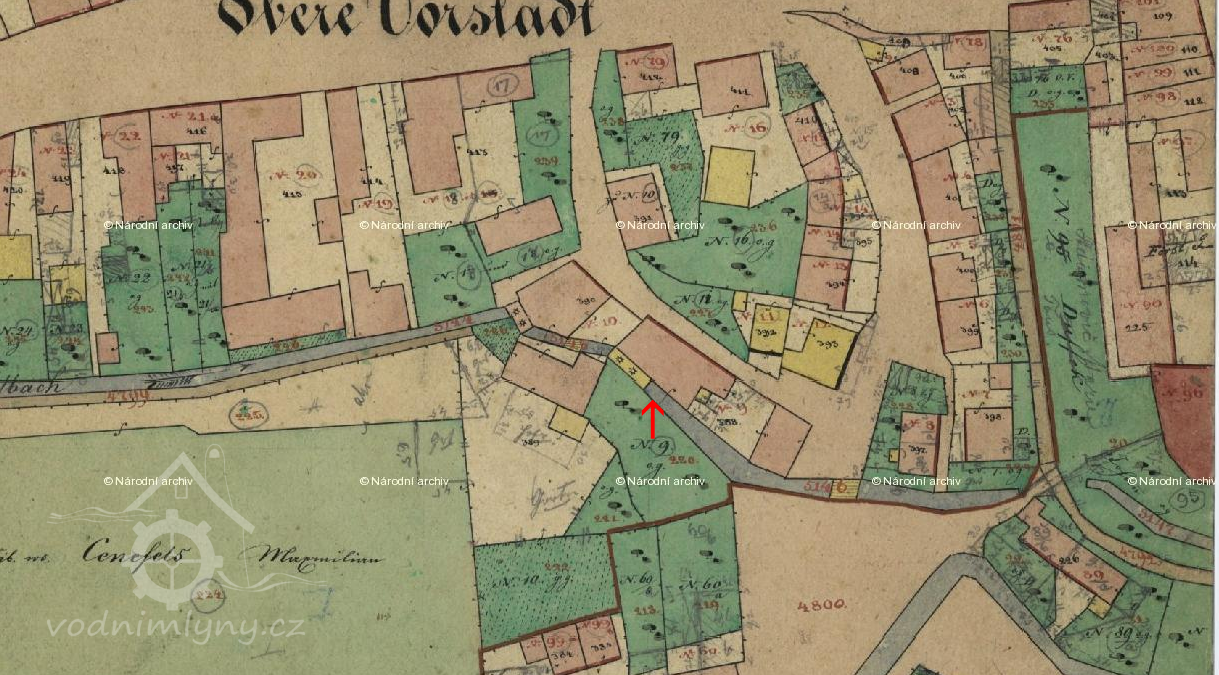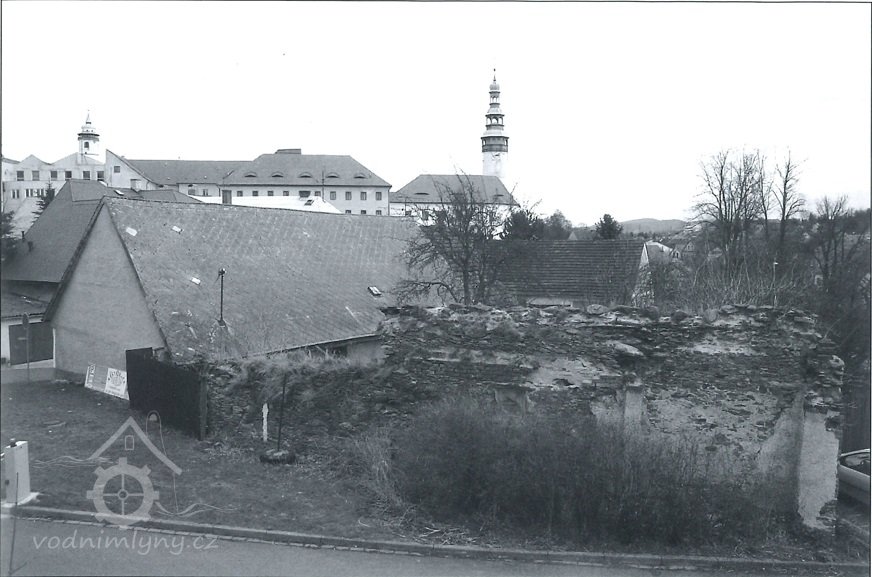 Pohled na mlýn, v popředí zbytky hospodářské budovy Kupilíkova mlýna, 2010, © Zdeněk Procházka