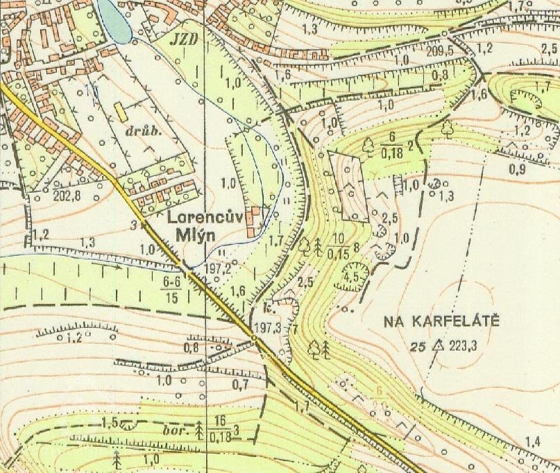 u mlýna 4,5 ha polí a 0,5 ha lesa