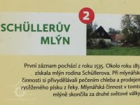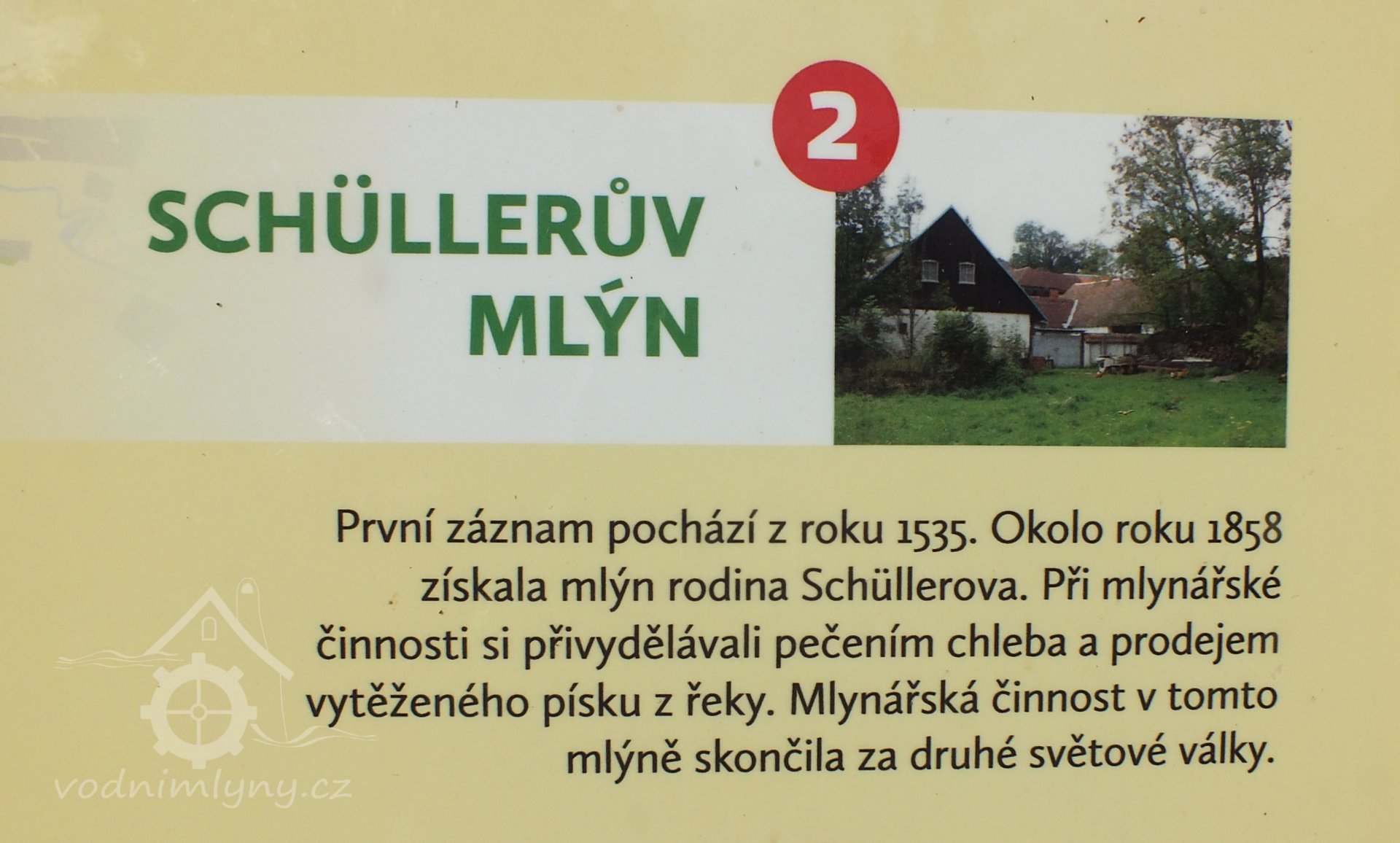 Mlýn je na řece Dyji v místě, kde do ní ústí Volfířovský potok. První zmínka o něm je z roku 1535. Kolem poloviny 19. století jej získala rodina Schüllerova a do dnešního dne se jich zde vystřídalo pět generací. Mlít se v něm přestalo v roce 1945.