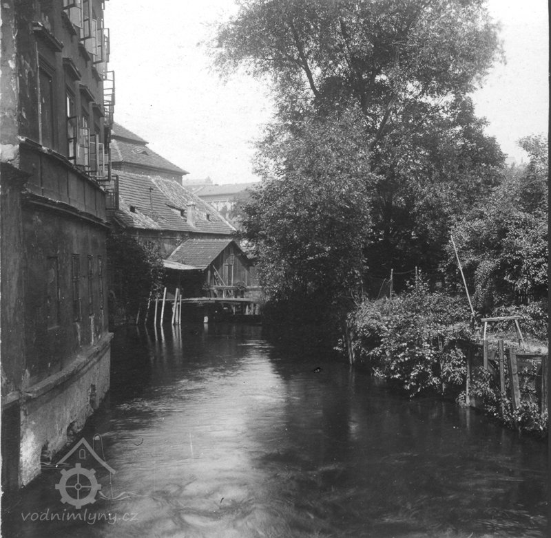 Pohled na mlýn čp. 449 a sousední dům čp. 450, 1920, © J. Brunner-Dvořák