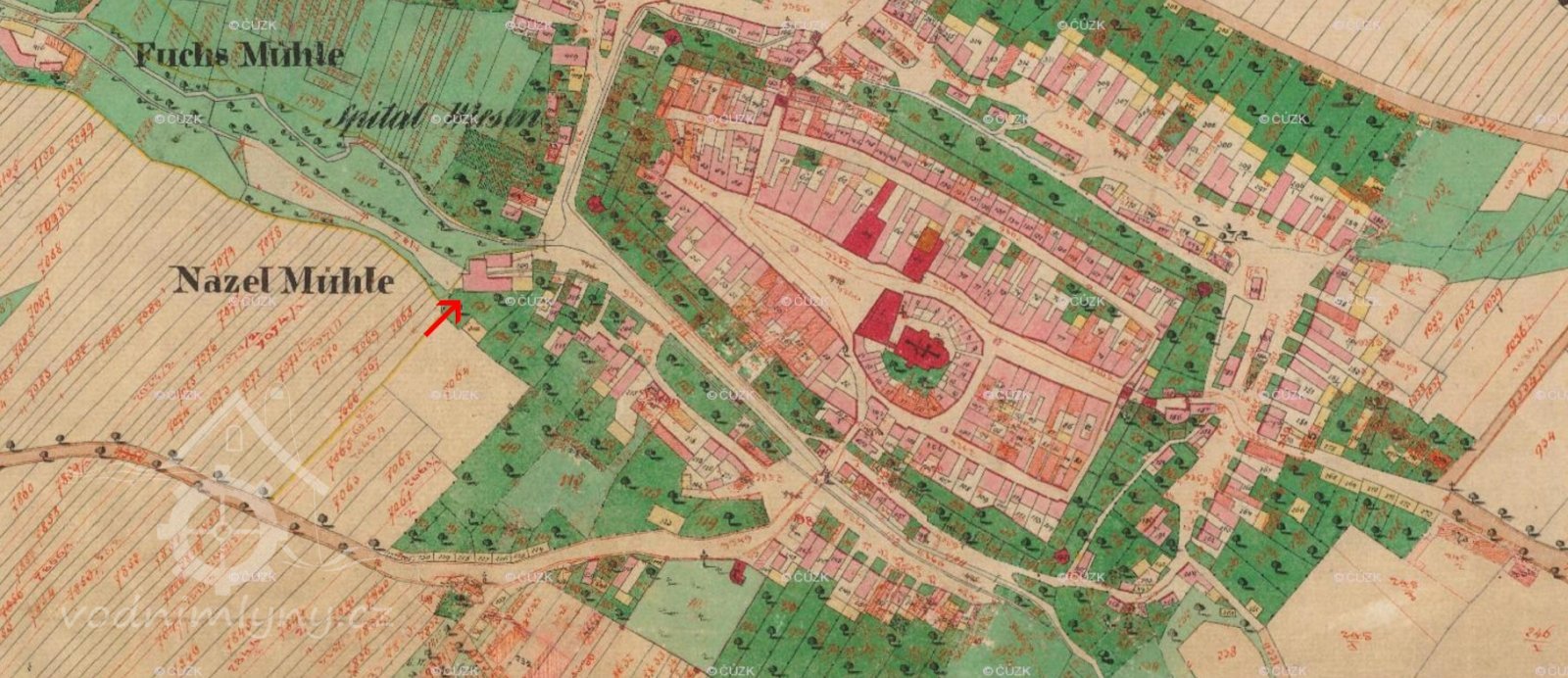 Natzermühle (čp. 157, ležící na kraji Spittlwiese) byl po několik generací obhospodařováván (až do roku 1749) rodinou Natzer. Od roku 1820 patřil podle matriční knihy statků Michelovi Plachovi a později rodině Mifka, která zde zřídila přádelnu a po které byl i mlýn pojmenován „Mifkamühle“. Jmenoval se i nadále „Mifkamühle“, ačkoliv již dávno patřil do vlastnictví Franze Benesche (1934).