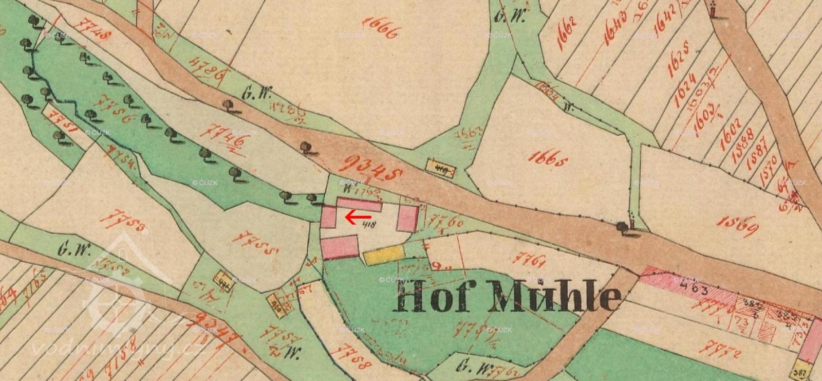H o f m ü h l e (čp. 21 na Stálkovské ulici) tenkrát jako největší mlýn platil panství činži 11 grošů. Jeho vlastník byl Hans Hofmüller, syn Barbary Wolff, jmenoval se ale po tomto tehdy panském mlýnu a ponechal si toto jméno i jako rodinné jméno. Po 250 letech tato rodina vymřela, mlýn byl uveden mimo provoz a v jeho budově byla zřízena mechanická tkalcovna Josefa Pabische. Jednopodlažní budova továrny stojí jestě dnes, pouze postranní části domu byly strženy.
