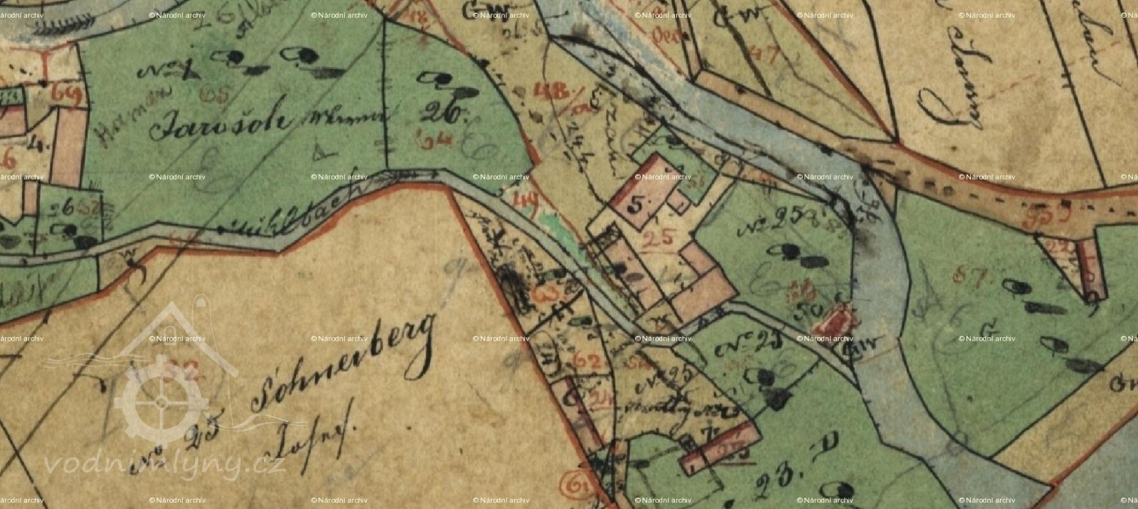 Posledním mlýnem na Radotínském potoku byl Dolejší mlýn čp. 25, Šnajberkův. Existoval již v době předhusitské a v záznamech se vyskytuje od roku 1432. 1587 je uvedeno, že držitelem je Pán, což značí, že je v majetnické držbě vrchnosti kláštera zbraslavského. V této době je vykazována povinnost 46 Zlatých co povinnost poplatná v penězích, jinak je uváděn pan Kutovec v úroku neboli finanční povinnosti 2,26 Zlatých, Řehák povinností dvou slepic a Anna Řehák povinností čtyř dnů ruční roboty. V době třicetileté války je tento mlejn bez provozu, nachází se v sutinách, jako většina budov, či obydlí v Radotíně a není zde uváděn žádný obyvatel. Od 1653 je v soupise zaznamenán opět jako mlejn Panskej. V následném období jsou uváděni jako vlastníci Dolejší mlýnVosolilovi ve dvou generacích, dále dvě generace Šnajberků.