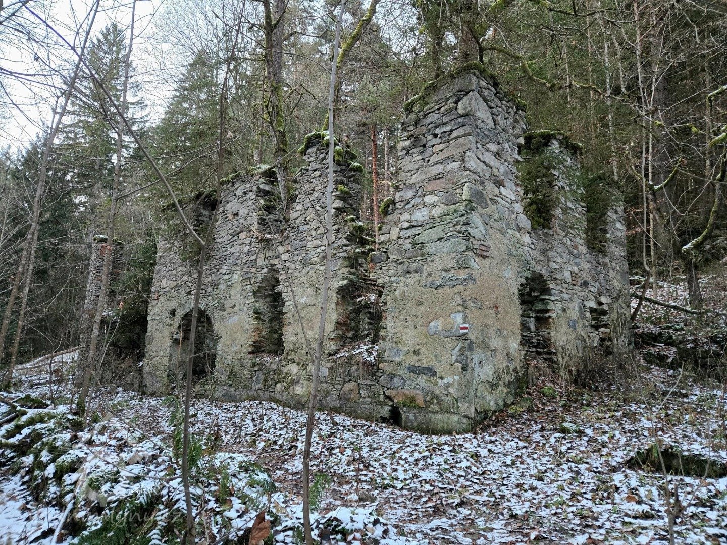 Pohled na zříceniny mlýna, 11 2025, © Ladislav Vondruška