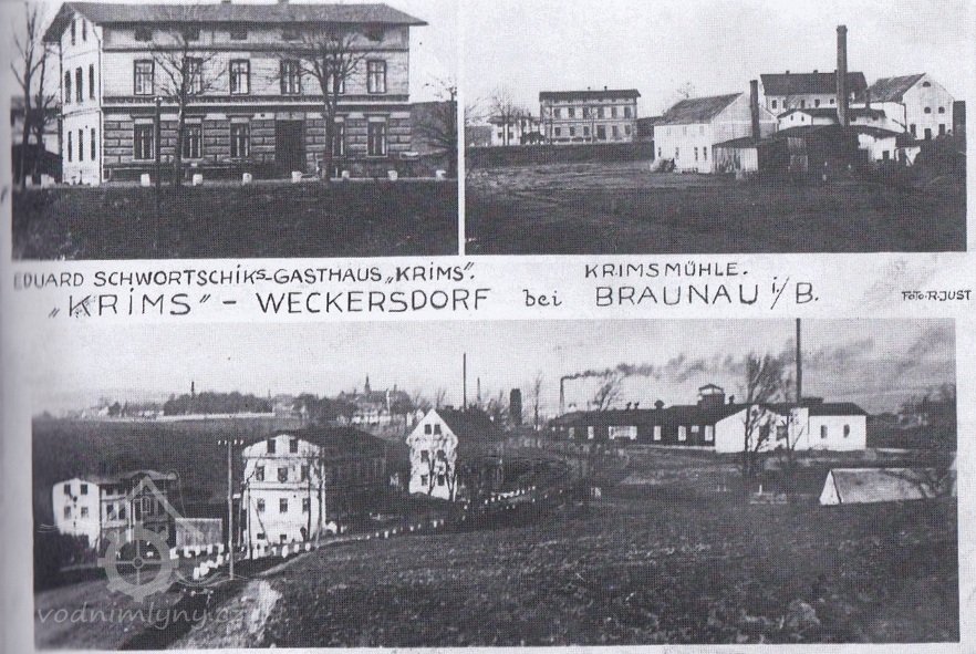 V roce 1888 byl hned vedle starého mlýna přistavěn mlýn nový a o něco později nad silnicí západně od mlýna i hostinec, což toto místo oživilo. Na půdě Obecního úřadu v Křinicích byly v r. 2002 náhodně nalezeny staré stavební plány, podle nichž byl mlýn postaven. Mlynář Schwortschik provozoval i hostinec Krims u silnice. Sousední budova, severně od mlýna, patřila benediktinskému klášteru / dnes firma Hobra  Školník/.