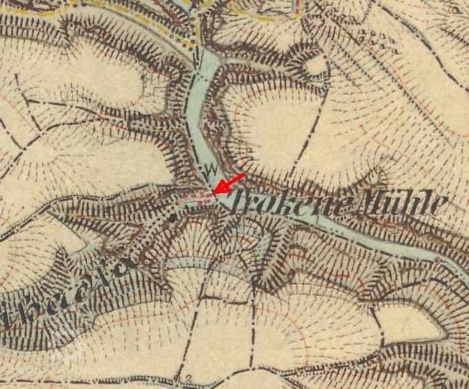 Na mapě I. vojenského mapování z let 1764 – 1768 není objekt zakreslen jako Suchý mlýn, ale jako „Loupežnická díra“ (Rauberloch). Možná to souvisí s pověstí o loupežnících, kteří zde ve mlýně měli bydlet a mlynář měl být jejich hejtmanem– viz pověst a historické mapy. (MH).