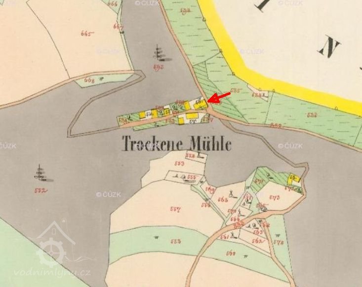 V roce 1927 popsal místo Karel Sellner, archeolog, spisovatel a učitel z obce Březovice: „Jsou zde tři stavení přitulená ke skalám, v nichž jsou vytesány chlívky a sklepy. Také zde spatříme zbytky zříceného baráku….“ Také Karel Sellner zmiňuje pověst o loupežnících v Suchém mlýně. (MH)
