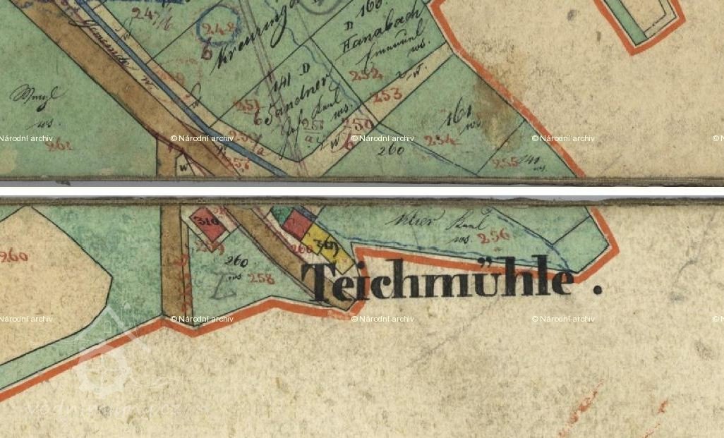 Teichmühle, Mlýn "Na Rybníku" stával u Chebské cesty u rybníka na kraji města Luby u Chebu dříve Schönbach. Později byl rybník zrušen, ale název zůstal. Poté byl mlýn přestavěn na velkou pilu rodiny Sandner pro řezání dřeva na výrobu strunných hudebních nástrojů. Zbořena v 60. letech.