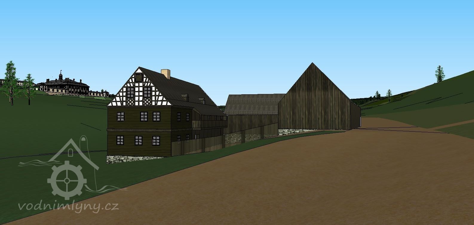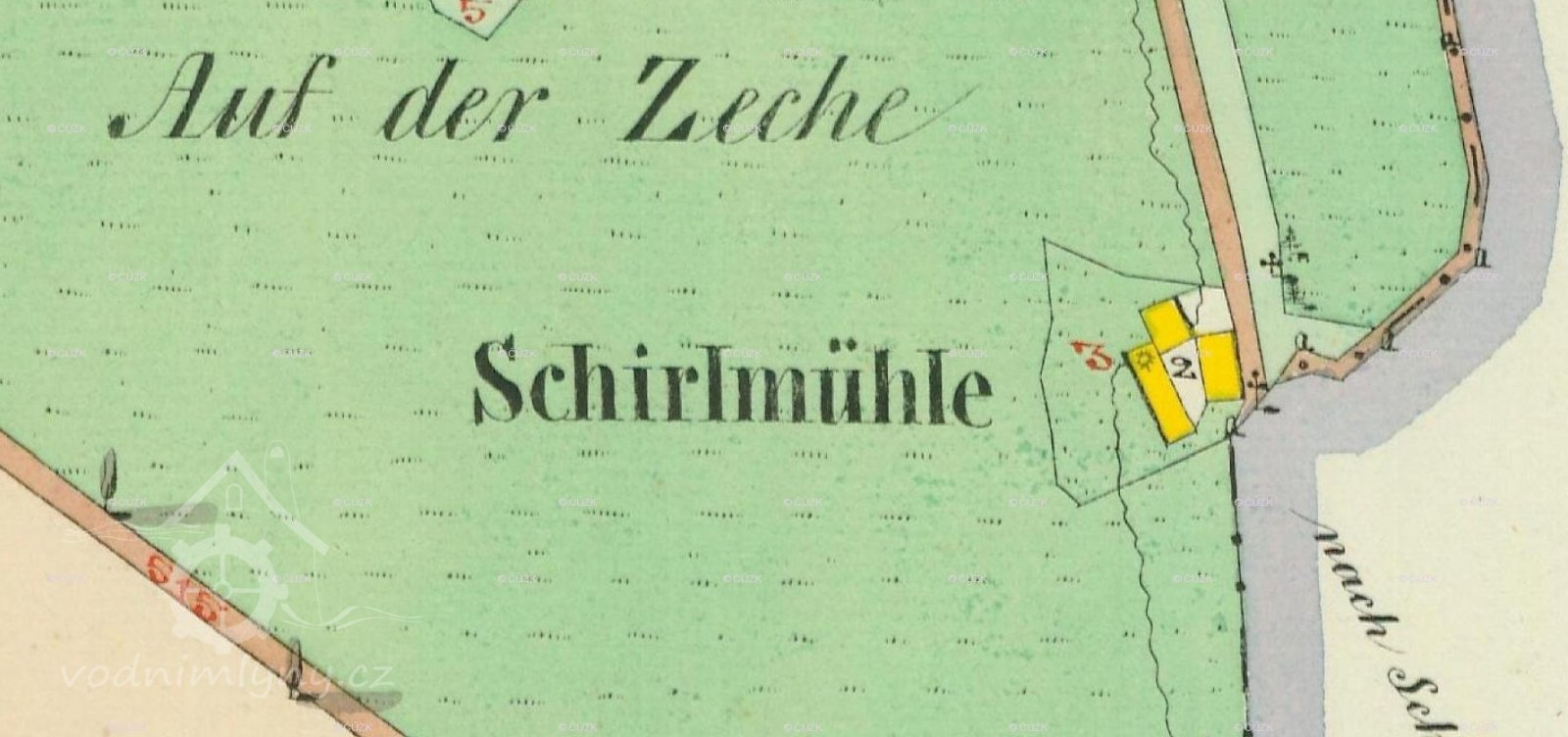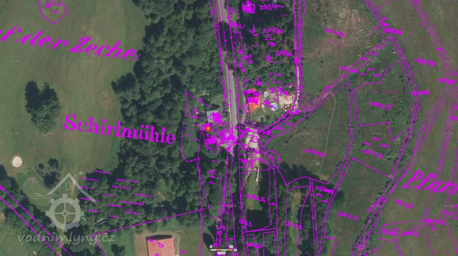 Schirlův mlýn, náhon podél cesty z Lubů do Saska.