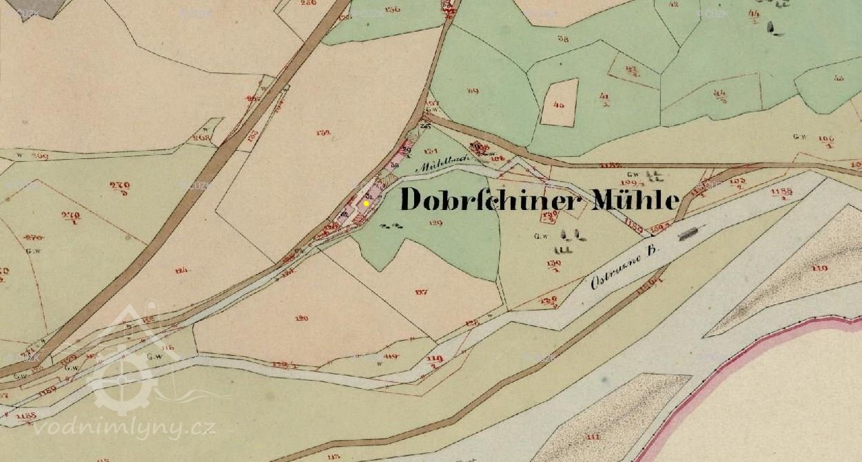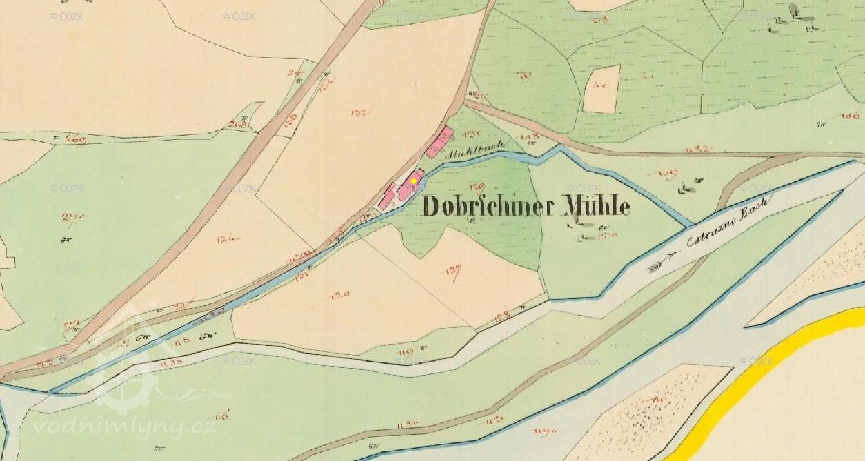 Mlýn je zachycen již na mapě I. voj. mapování.