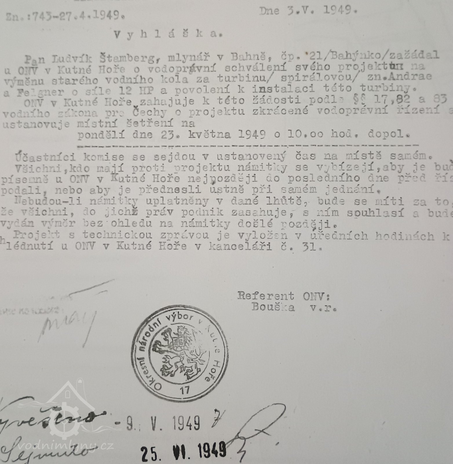 1651 Soupis poddaných podle víry: mlynář nájemník Mikuláš Svoboda (35 let), jeho žena Alžběta (28), syn Adam (8), všichni svobodníci a katolíci