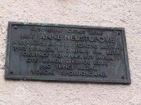 Šlechetné české ženě paní Anně Neustupové, mlynářce a majitelce tohoto mlýna pro trvalou upomínku na léta okupace 1939-1945, kdy měla otevřenou štědrou ruku pro trpící bližní