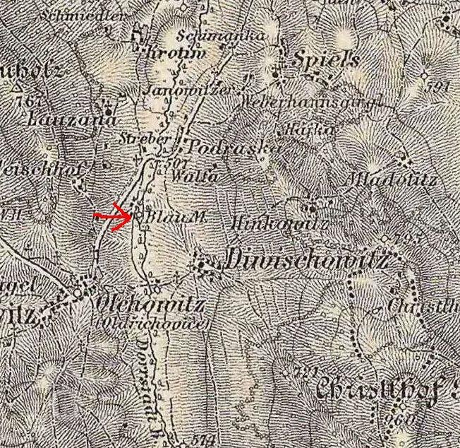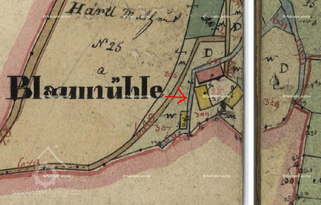 Také zde hospodařili už kolem roku 1670 Ulrychové - (1668 -79 Pavel Ulrych), po roce 1700 Hartlové. Poněmčený název "Plahmühle" se pak dále zkomolil na "Blaumühle". (RŠ)