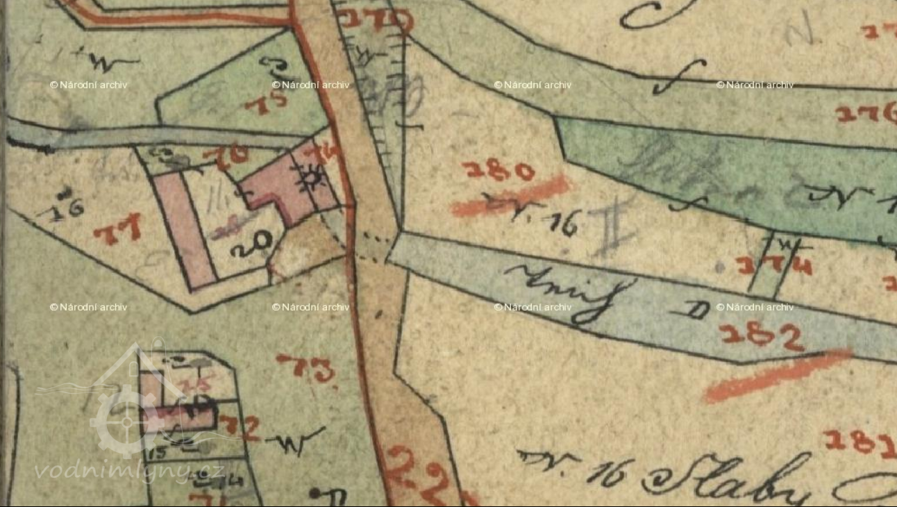 1654 - budova mlýna napůl kamenná, z části roubená dřevem, mlýn dočasně zabavený Karlu Eusebiovi z Liechtensteina mlel pouze jedním kolem (1 kolo stupní)