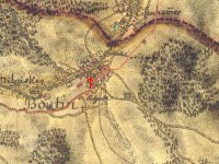 Mlýn leží asi 200 m na sever od kostela v Bohutíně