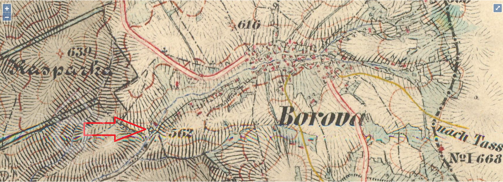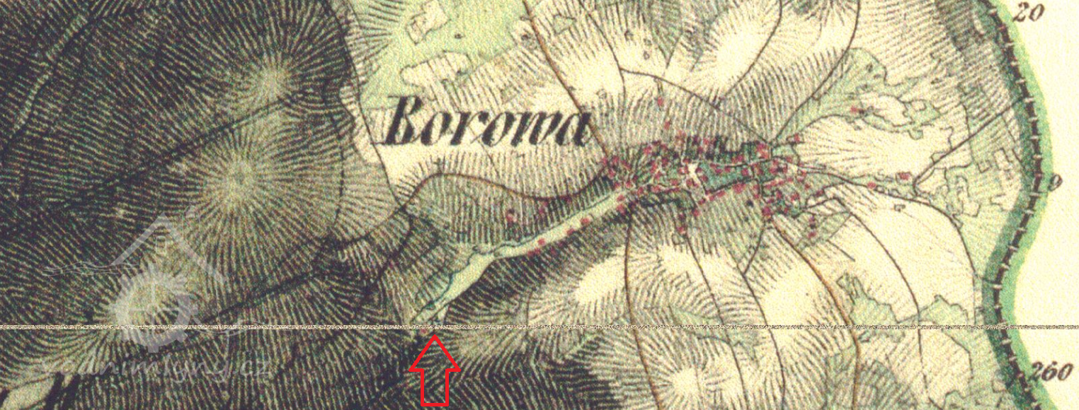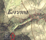 1 km jihozápadně od kostela Božského Srdce Páně v Borové