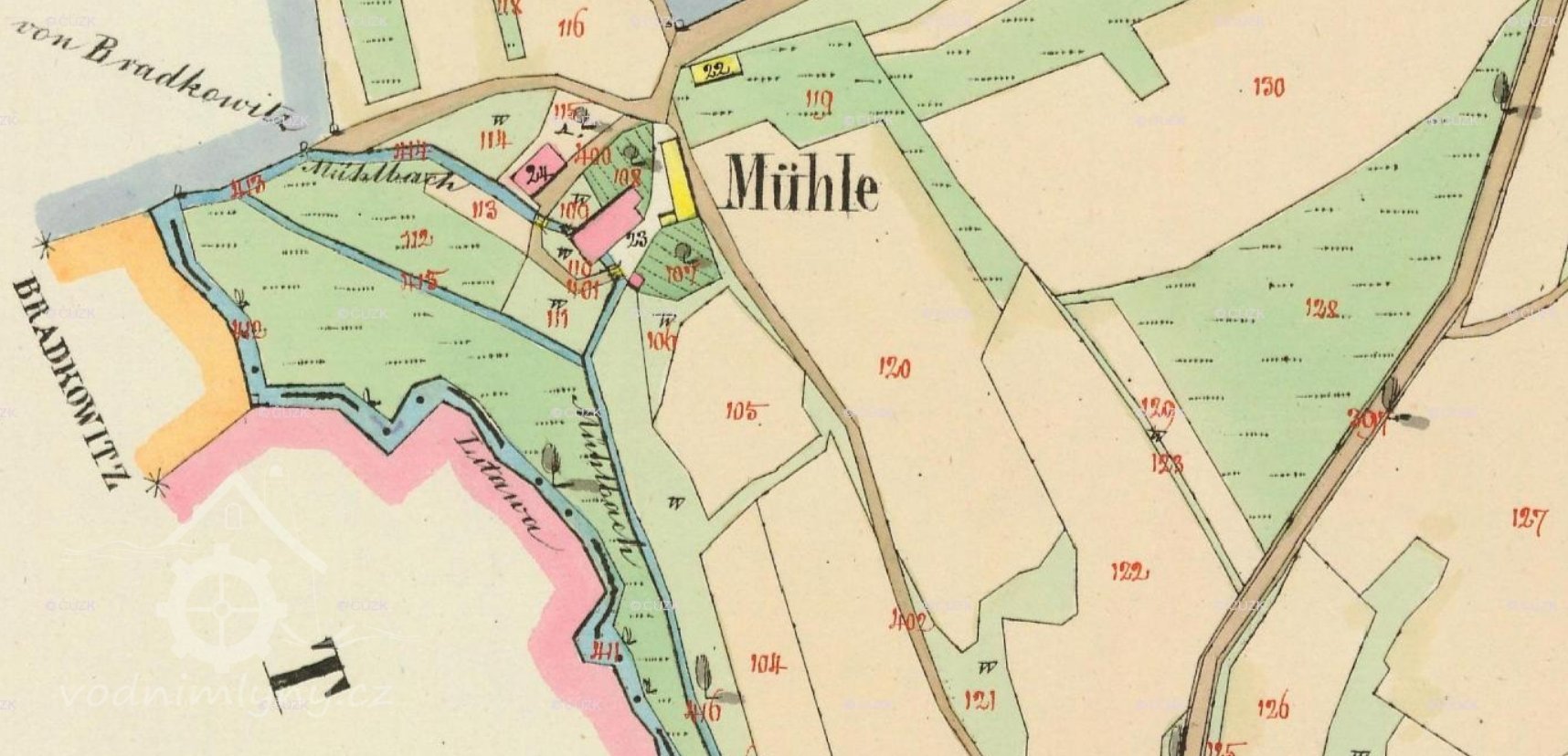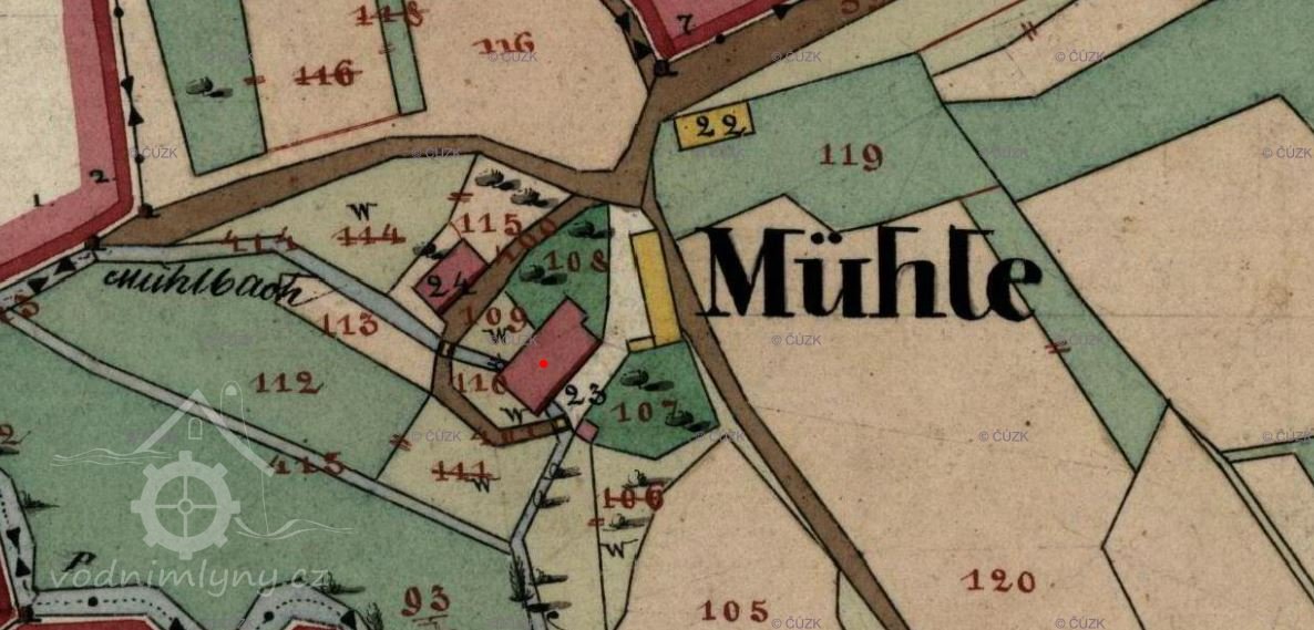 Popis1930 3 vodní kola, hltnost 482 l/s, spád 3 m a výkon 12,6 HP