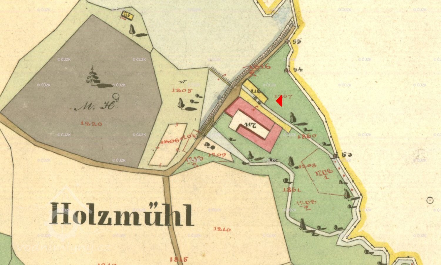 Rok 1910 - Dřevěný Mlýn (Holzmühle) – vlastník domu Pankrác Vrzák