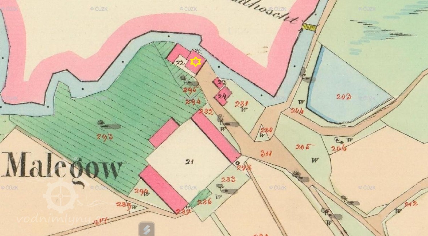 Mlýniště je s velkou pravděpodobností značného stáří a vyloučit nelze ani jeho středověký původ, avšak první konkrétní zmínka zjištěná tímto průzkumem k mlýnu v Janovičkách se vztahuje k roku 1651, kdy „ve mlejně Malejovském“ jsou v rámci soupisu poddaných podle víry uvedeni mlynář Martin Luntras, jeho manželka Dorota, mládek Jakub N. a pacholek Jiřík N. Poté je mlýn zaznamenám roku 1704 v prvním plošném soupisu (panských) mlýnů včetně poznámky o dvou mlecích složeních [„Malleyower… 2 gänge“]. Dominikální část Tereziánského katastru uvádí v 50. letech 18. století mlýn „Malejov o 2 kolech“. Je tedy téměř jisté, že ve mlýně již roku 1704 mělo každé z obou zmíněných obyčejných složení k pohonu své vlastní vodní kolo. K roku 1837 uvádí ve své Topografii J. G. Sommer vrchnostenský dvůr Malejov a 1 mlýn [„Maierhof Malegow und 1 Mühle“]. O pouhé dva roky později zachycuje areál mapa stabilního katastru. Zachycuje jak mlýn [stavební parc. č. 22] na katastru Janovičky, tak pilu [stavební parc. č. 33] na katastru Radhoště. Mlýn je na této mapě vyznačen červenou barvou, tedy jako vybudovaný z nespalných materiálů, pila naopak barvou žlutou, tedy postavená z materiálů spalných. Z materiálů dostupných v rámci tohoto průzkumu se k roku 1932 víme, že zde „Alois Minář“ provozoval „mlýn [čp.] 19“ a „Jan Horáček“ zase „tkalcovnu [čp.] 32“, avšak k ní materiály z Mlynářského ústředí mlčí – kolonka Připojené provozovny je proškrtnuta.