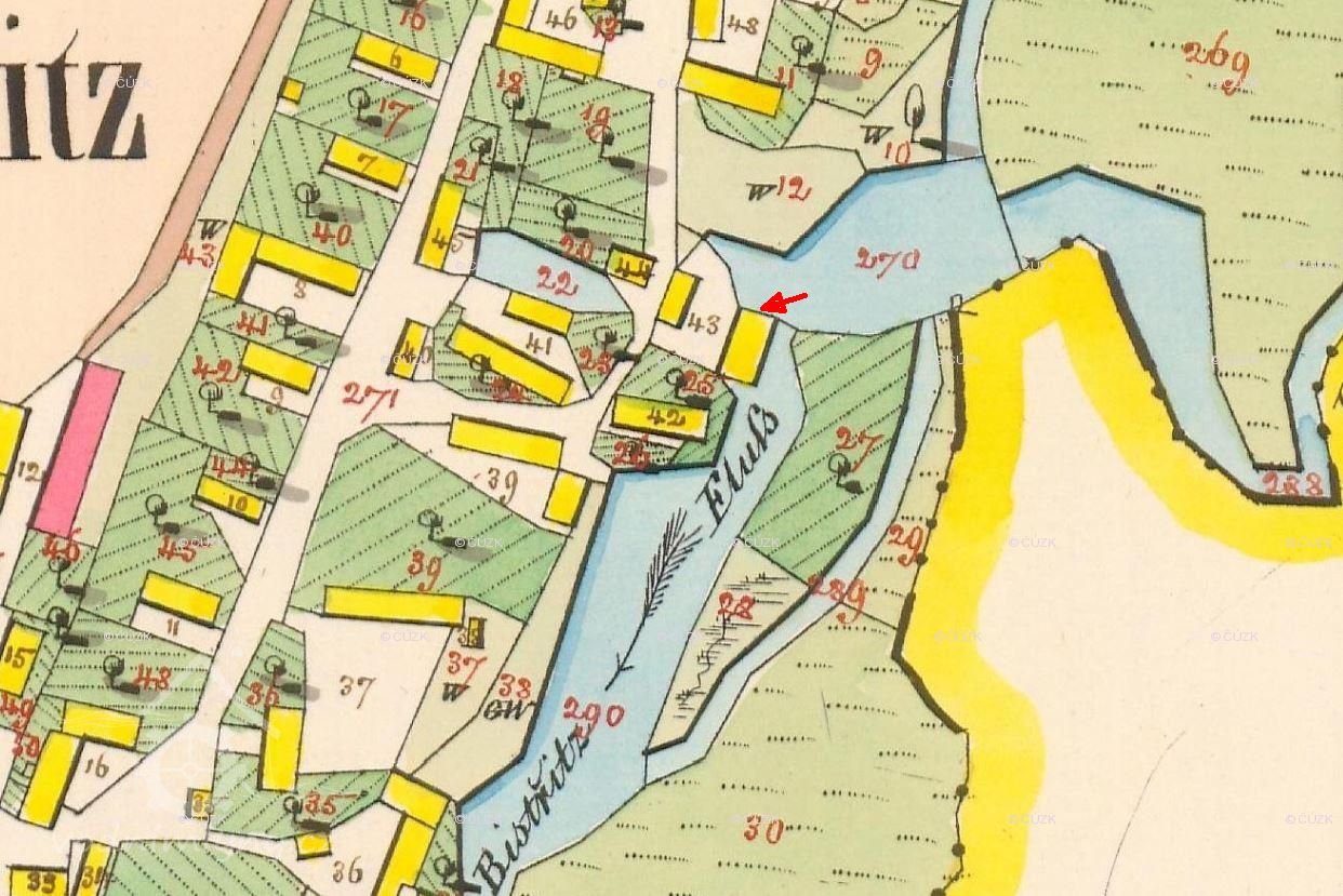 1841 - mlynář Oktavián Krátký (uveden na indikační skice)