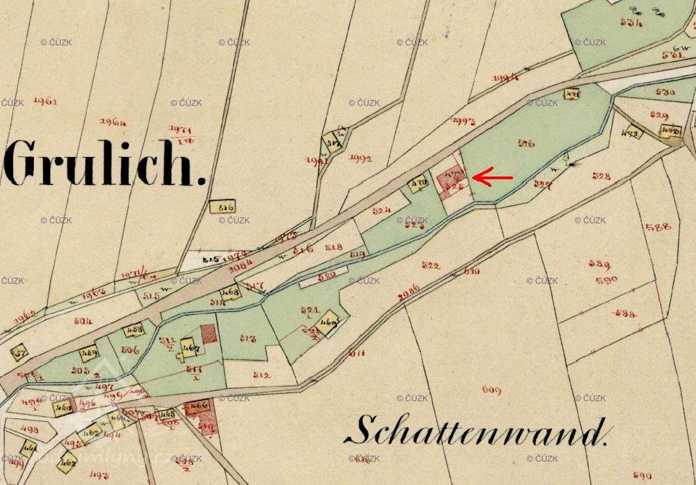 Na císařském otisku z r. 1839 ještě není mlýn zakreslen. Na indikační skice je dokreslen později.