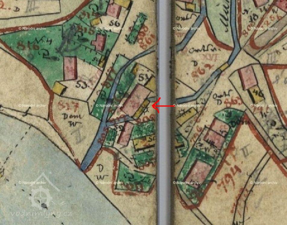 První písemná zmínka je z r. 1649. Byl to panský mlýn se dvěma vodními koly. Na císařském otisku je dále vyznačena pila v samostatném dřevěném objektu.