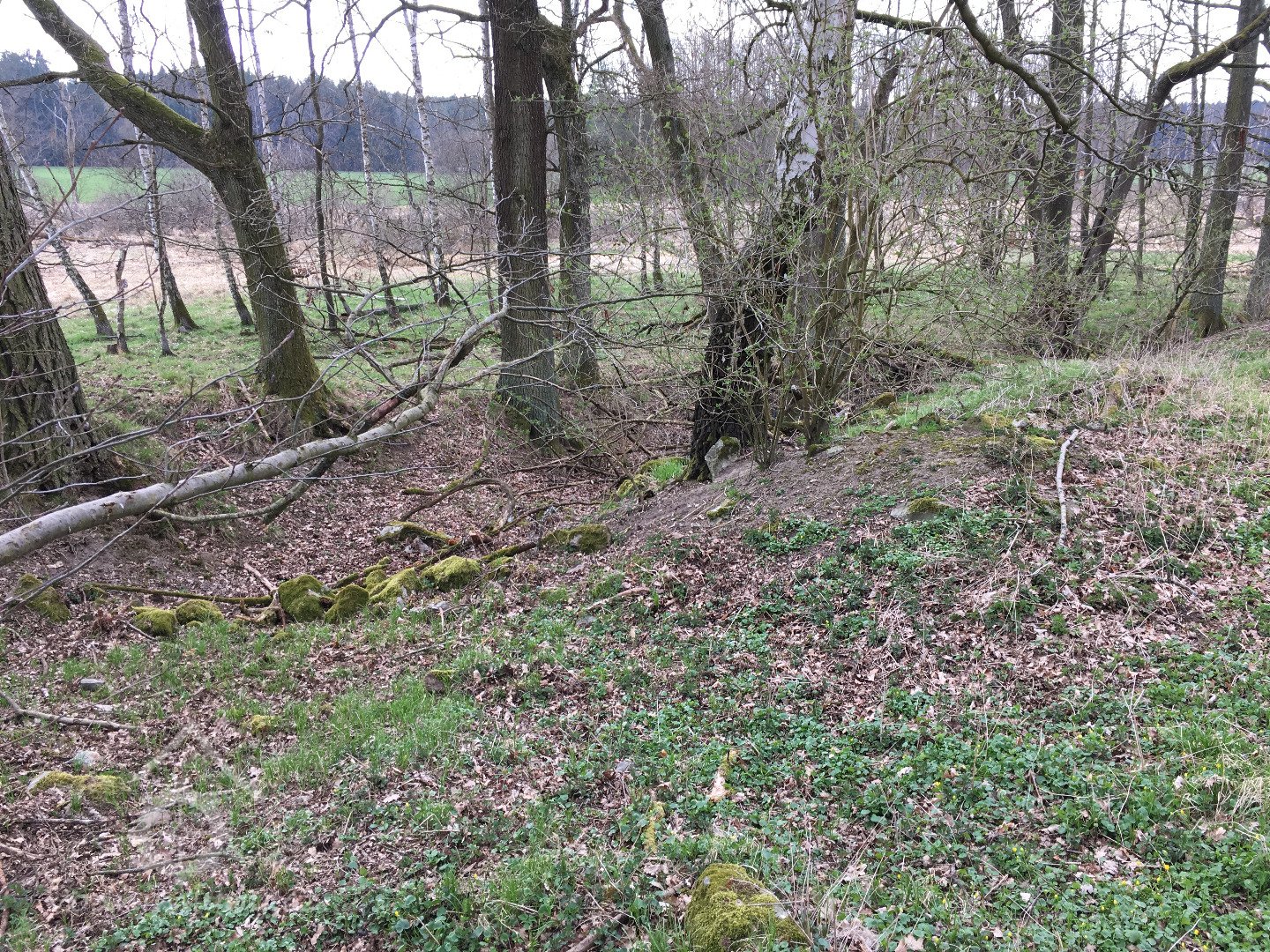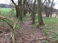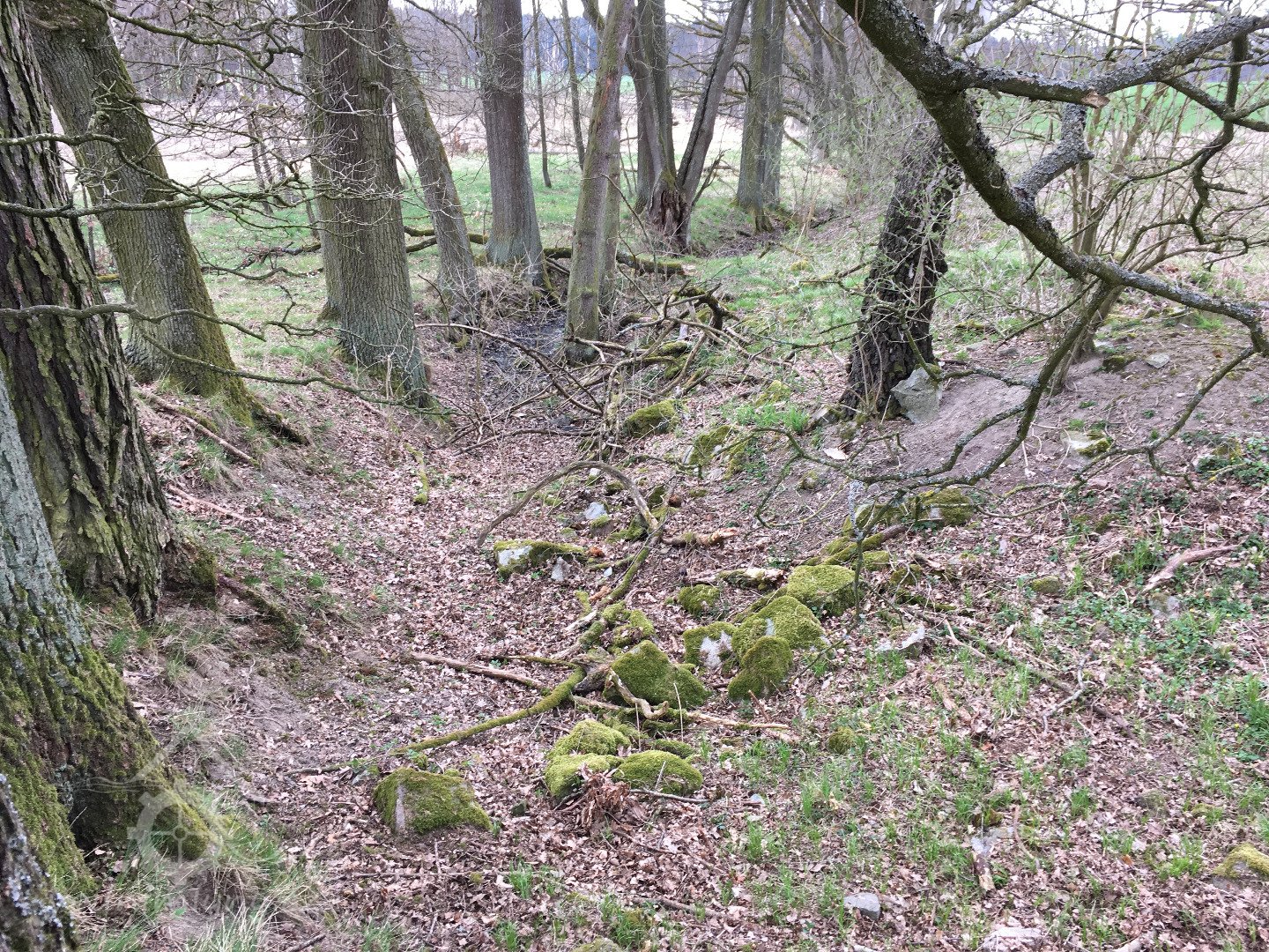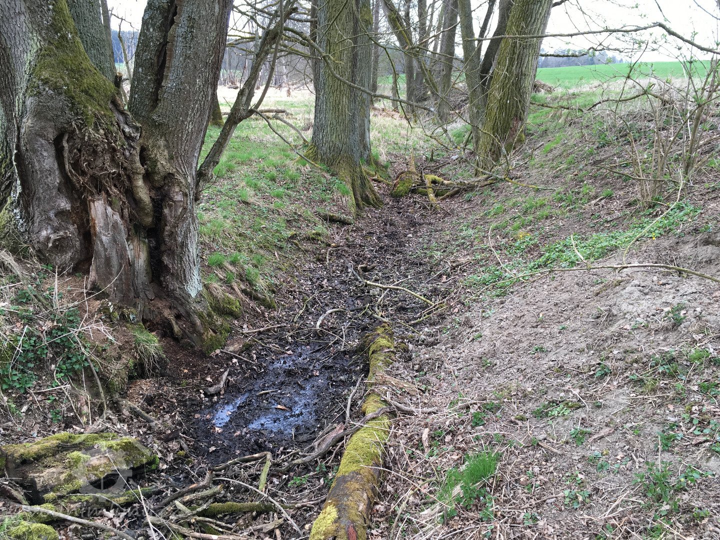 Je zobrazen na otisku stabilního katastru a originální mapě z roku 1838 - náhon se v pravém úhlu stáčí k jihu okolo kratší strany hlavní nespalné budovy, u mlýna další dvě menší nespalné budovy a jedna malinká, odtokový kanál šikmo za mlýnem směrem k potoku, je zakreslen jako nová stavba, takže vznikl krátce před tvorbou mapy.