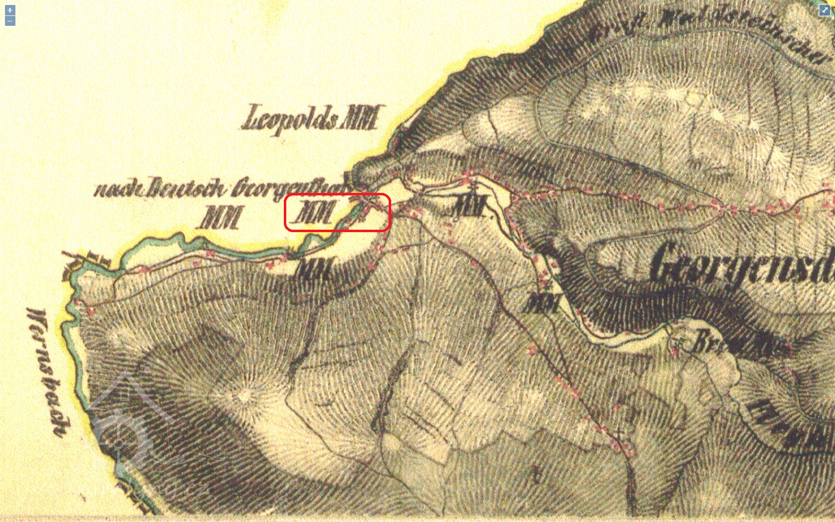 400 m západně od kostela sv. Jana Křtitele v Českém Jiřetíně