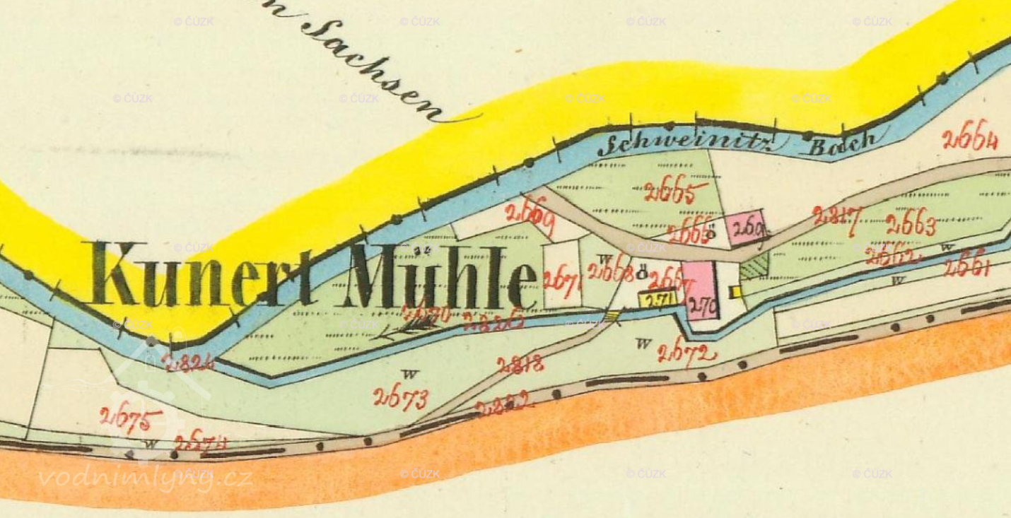 Po roce 1953 zaniklý mlýn na saských hranicích, v roce 1930 se zde vyráběly krušnohorské dřevěné hračky.