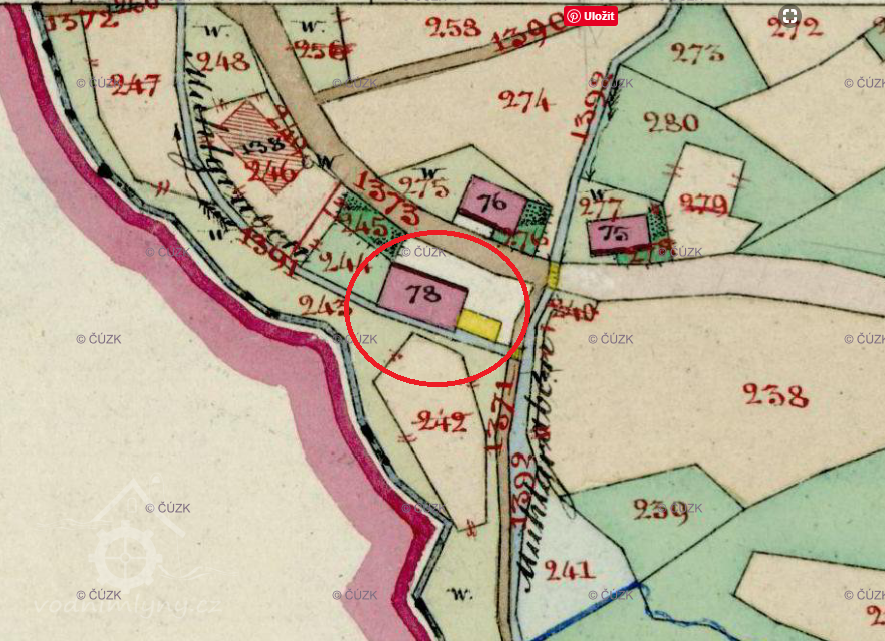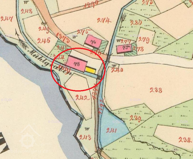 Popis1930: 1 kolo na svrchní vodu, hltnost 0,08 m3/s, spád 3,7 m, výkon 2,5 HP