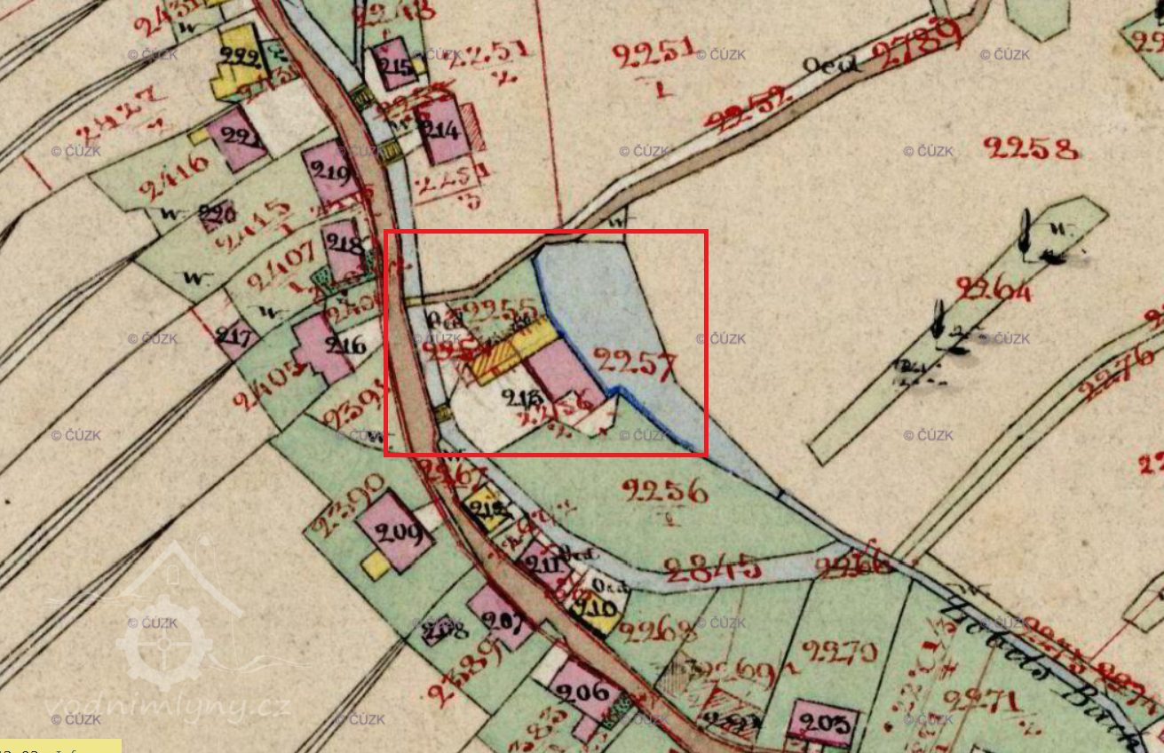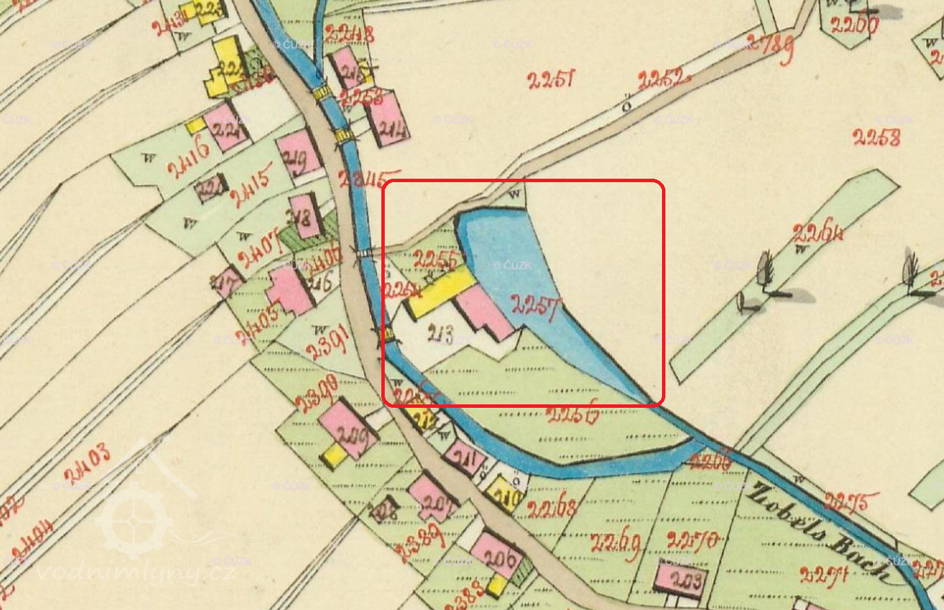 Popis1930: 1 kolo na svrchní vodu, hltnost 0,15 m3/s, spád 3 m, výkon 4,5 HP