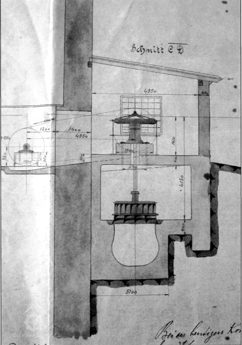 PopisV roce 1930 – jedna Francisova turbína s hltnosti 2,57 m3/s a výkonem 53,5 HP, spád 2,1 m