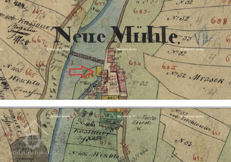 Mlýn se nazýval Novým mlýnem od prvního vojenského mapování 1764-1768.