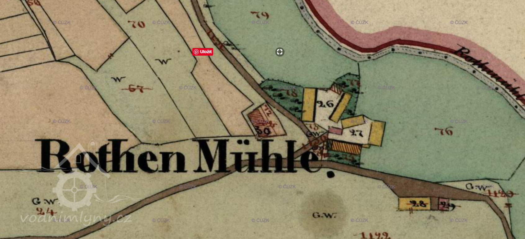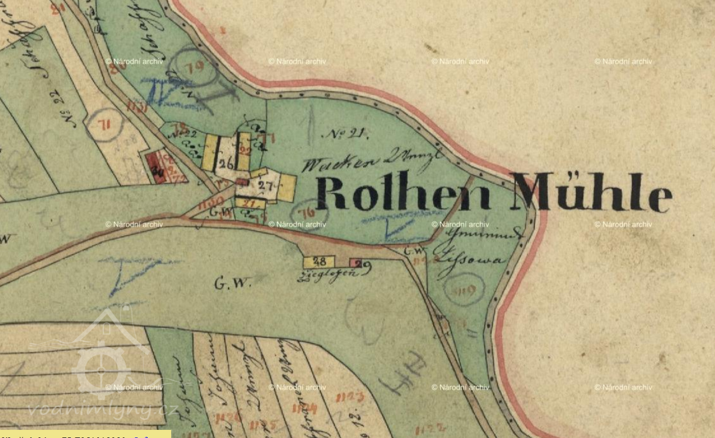 Na katastrální mapě z roku 1838 není zakreslen žádný přítok vody ke mlýnu.
