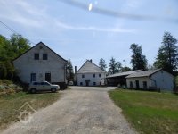 Dlouhý obdélníkový dvůr zakončený patrovou budovou obytné mlýnice.