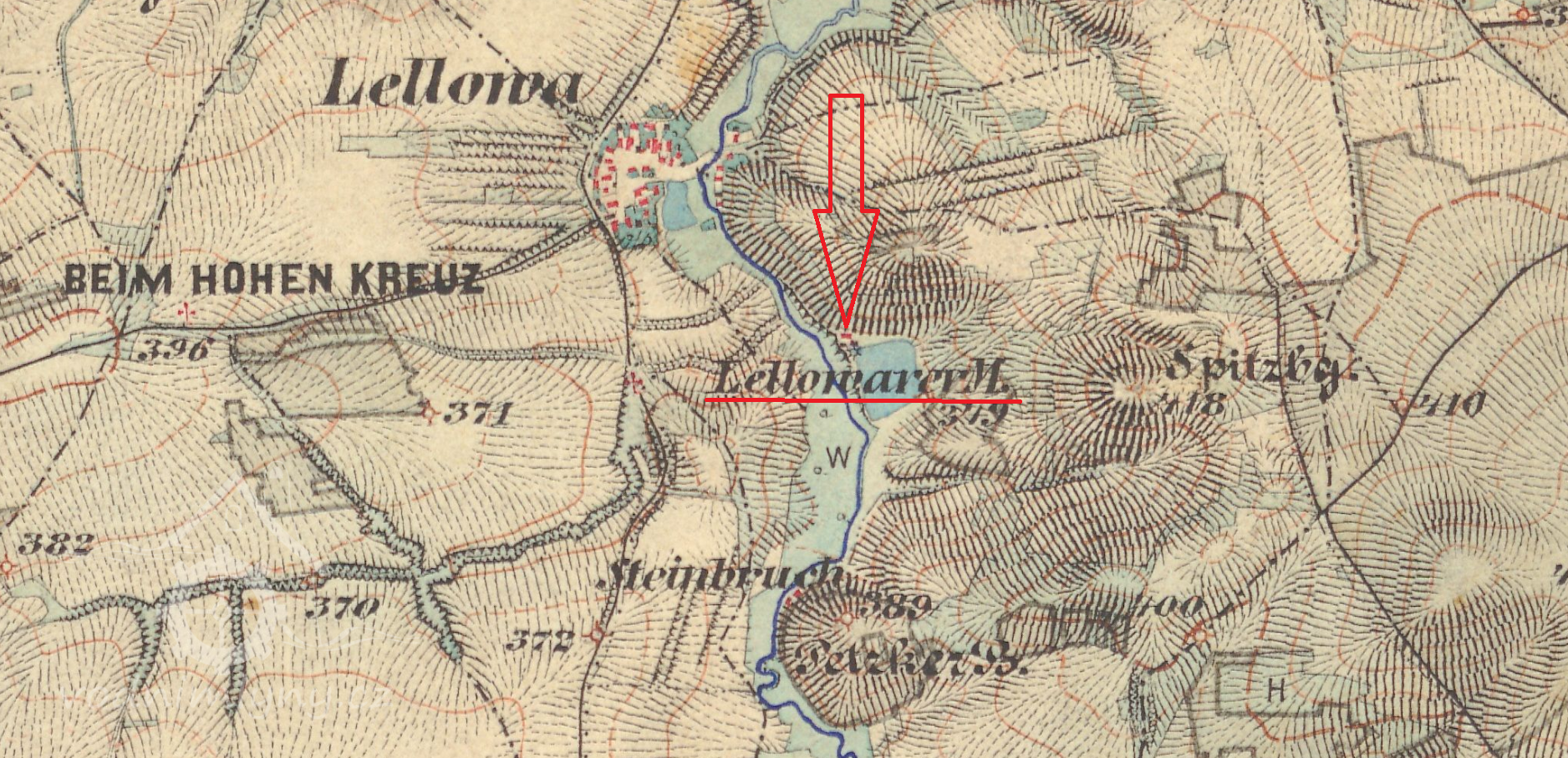Mlýn na jižním okraji lelovského katastru, založený až v 2. pol. 19. století.