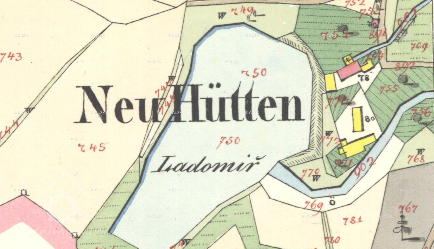 nad mlýnem býval Novohuťský rybník (1887 měl 1,34 ha) se sypanou 4 m vysokou hrází, v koruně o šířce 2,5 m