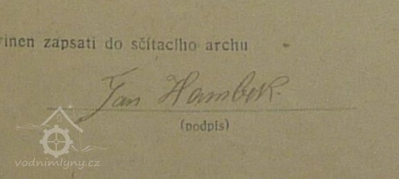 1910 – mlynářem syn Jana Hambeka Jan ( *1890 Úsilov )