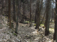 horní náhon zaříznutý do stráně, velmi hluboký, 2x delší, dosáhl výškového rozdílu 13 m