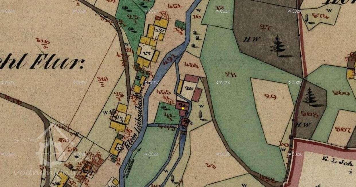 Mlýn uprostřed bývalé obce Libava, poslední mlýn na Malé Libavě, doložený v Loketském urbáři k roku 1525. Zanikl s celou obcí po zařazení do VVT Prameny, přes mlýniště dnes prochází silnice.