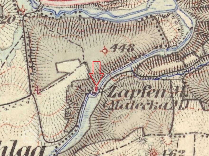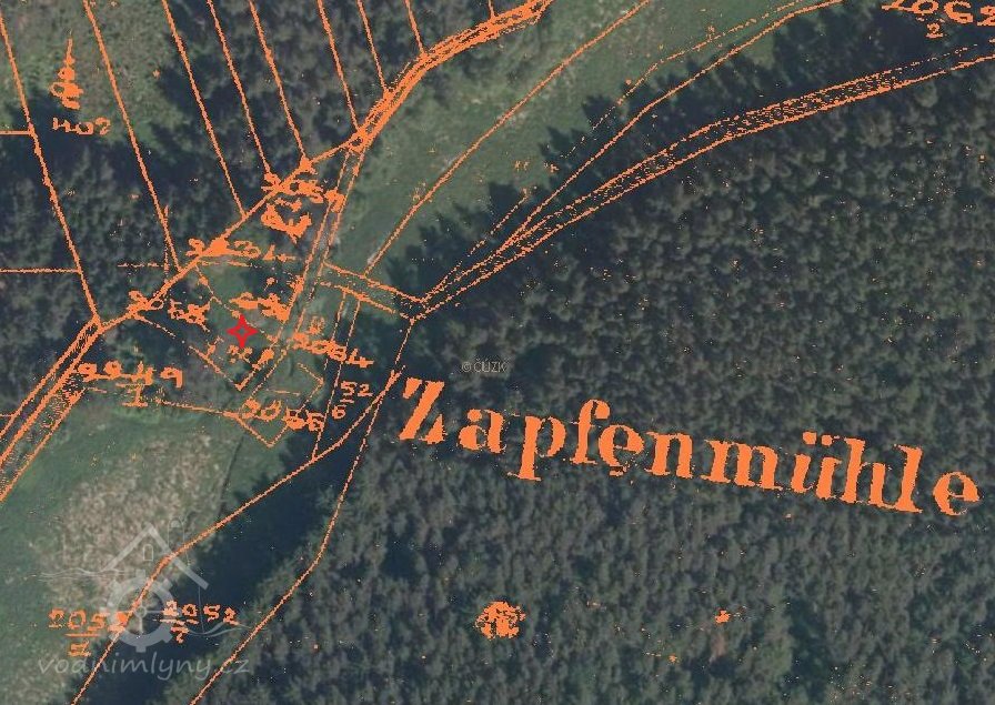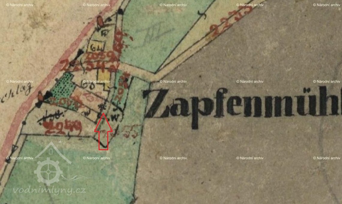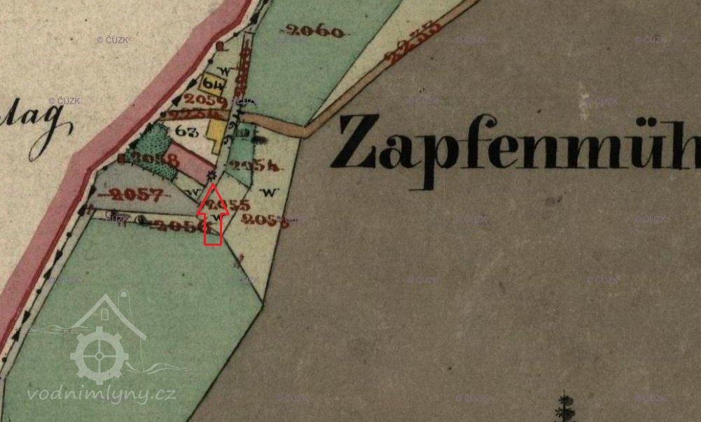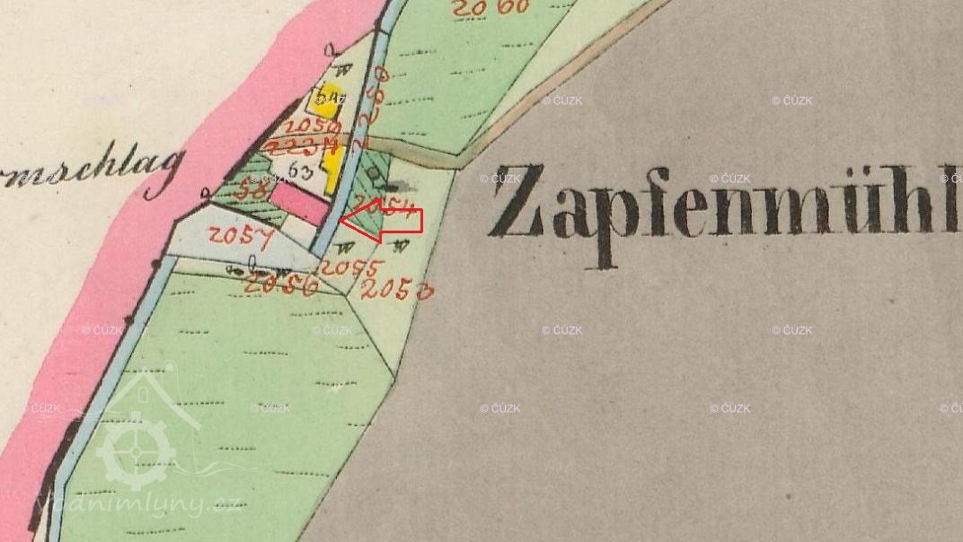 V Josefském katastru z roku 1788. Je mlýn zapsán pod názvem Zapfen Mühl.