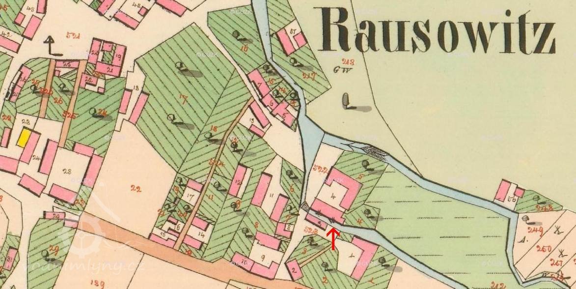 V roce 1930 byla ve mlýně 1 Francisova turbína, hltnost 0,45 m3/s, spád 3,35 m, výkon 15,2 HP.